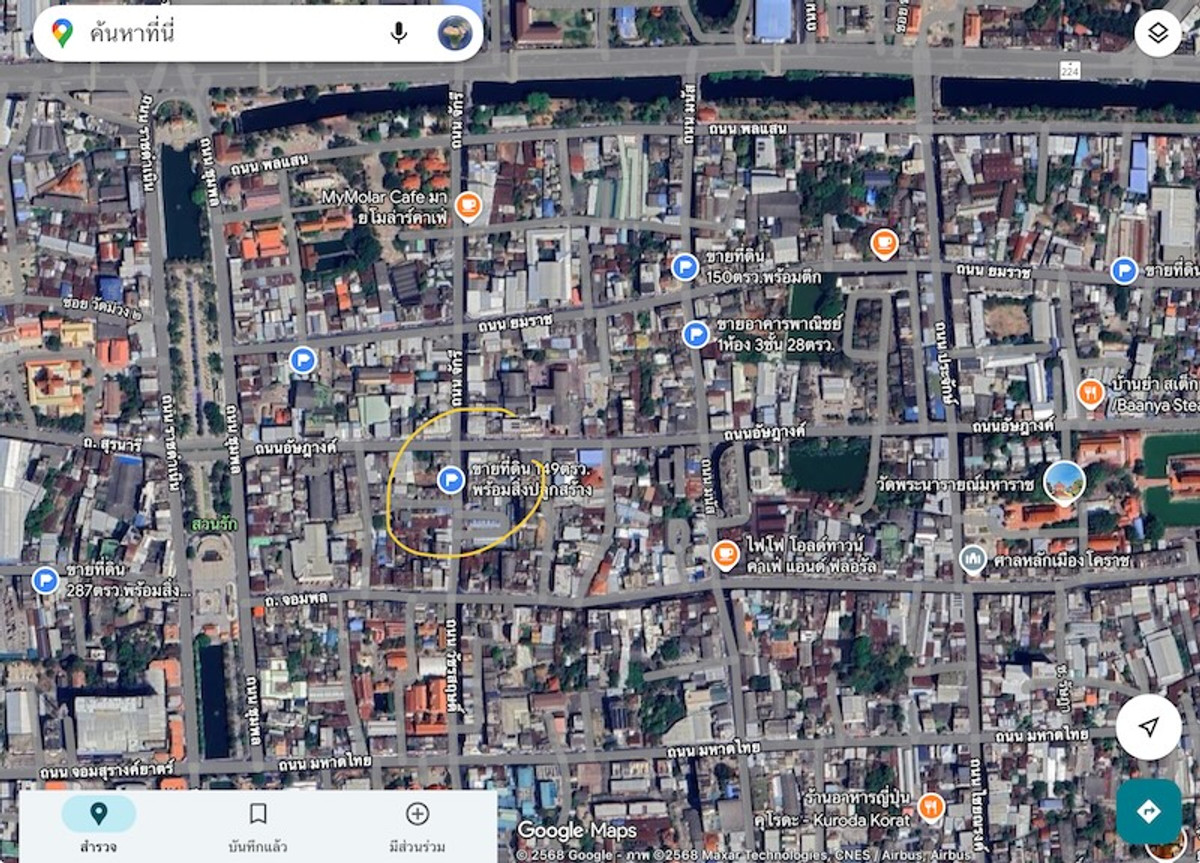 Land with buildings in Korat city, area 149 sq m, next to Chakri Road, frontage 14 meters, depth 40 meters, suitable for development into a shopping mall, showroom, clinic, office, small warehouse in