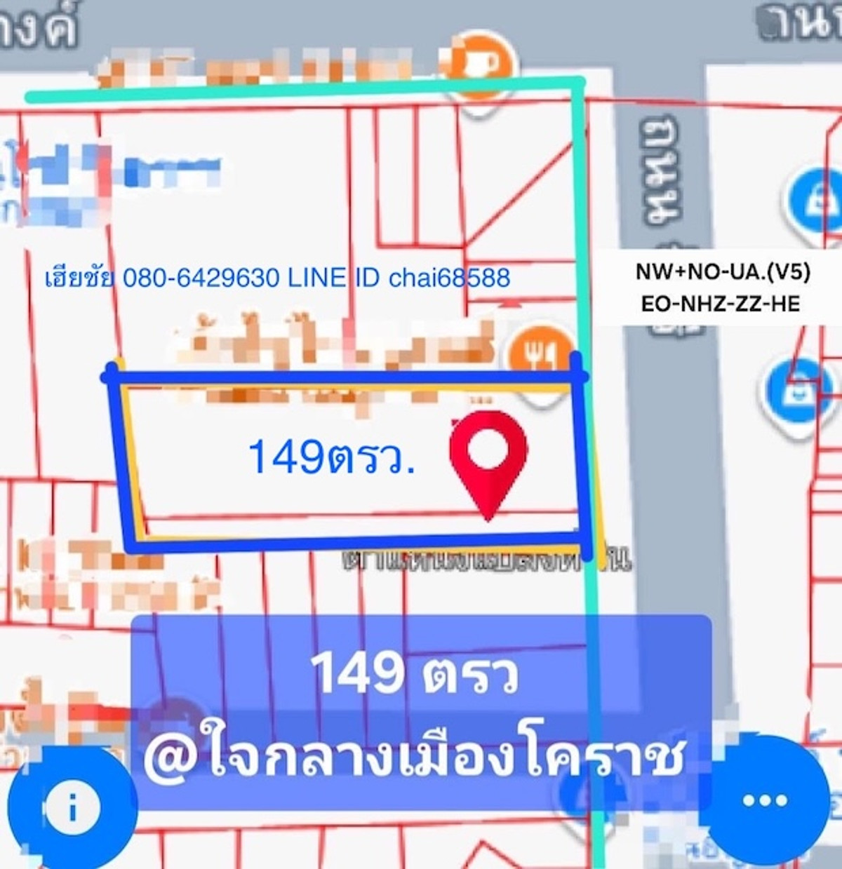 Land with buildings in Korat city, area 149 sq m, next to Chakri Road, frontage 14 meters, depth 40 meters, suitable for development into a shopping mall, showroom, clinic, office, small warehouse in the city. 300 meters from Lan Ya Mo, price 30 million, negotiable. If interested, ask for details, contact Hia Chai Contact number LINE ID chai68588, follow the page for selling land in Korat city/consignment for sale.
