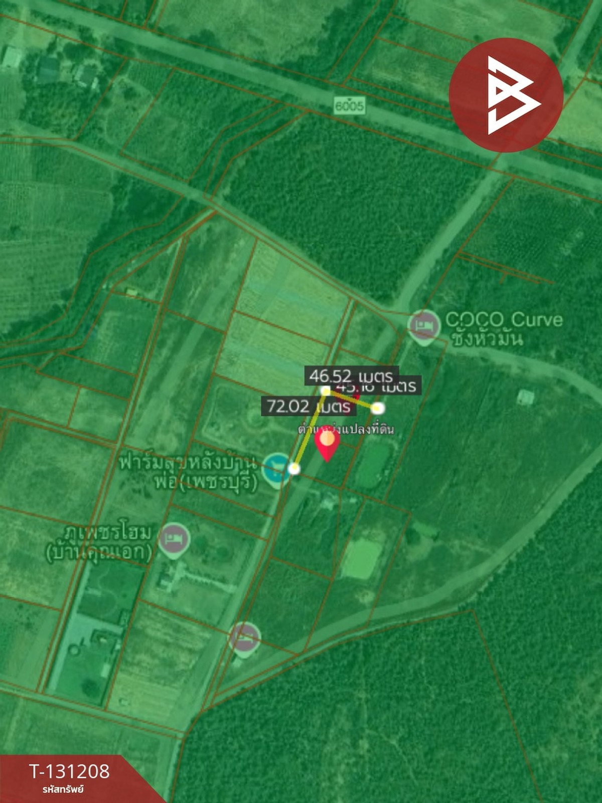 Land: Tha Yang, Phetchaburi Location: Klat Luang Subdistrict, Tha Yang District, Phetchaburi Province Property code: T-131208 Type: Land Area: 2 rai Width: 72.00 meters Depth: 46.50 meters Direction: Northwest Additional details: Green area North-west 2 rai, can be divided and sold , suitable for agriculture, farming, resort, residence Nearby places Thung Pong Farm Chang Hua Man Project Khao Krapuk Temple Price: 1,100,000 baht Map link: https://maps.google.com/?q=12.75960300,99.71502600 **We provide free loan arrangements. Ready to give advice Available from every bank** **with special interest rates and a maximum credit limit of 90-100% of the appraised value** If interested, ask for more information or make an appointment to see the house at Tel : Contact number Korn (agent code 6063) Line ID : kornhandsome Callcenter : Contact number Interested in looking at other properties More than 3,000 items www.tb.co.th The Best Property Agent CO,.LTD. Leader in the brokerage business Full service real estate agent With professionalism, use of technology and creative innovation. To deliver the best service for you Providing services in buying, selling, and renting real estate.
