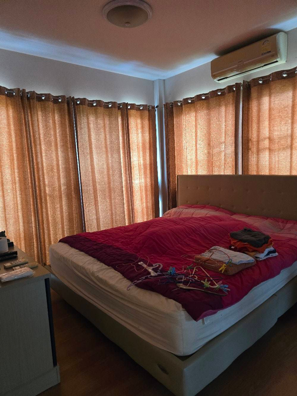 Good location, convenient travel, close to the expressway, shopping malls, schools and complete amenities. Area size 57.4 sq m. The playground is very large and wide. There is a swimming pool and gym. All in very good condition. 3 bedrooms, 3 bathrooms Free 3 air conditioners Curtains kitchen counter Near Sarasas Witaed Saimai School 500 meters. BTS Khu Khot 6.7 km. GCH Hospital San Mai 1.5 km. Fashion Island 13 km. Sold as is, special price, transfer before June.