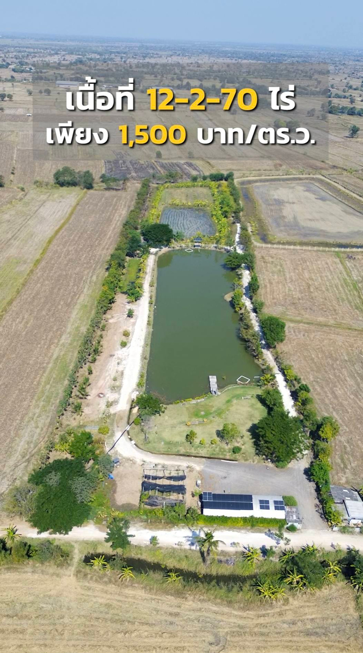 Baan Suan, retirement age, mixed rice fields, near the M6 motorway bypass road, area 12-2-70 rai, only 1,500 baht per square wa, only 6 hundred thousand baht per rai, male Contact number 🔸️Baan Suan Knockdown house 🔸️Area 12-2-70 rai 🔸️Width next to public road 70 m. 2.5 rai, there are many types of fish, tilapia, golden carp, giant catfish , giant catfish 🔸️There is a chicken coop. Raising over a hundred chickens Can lay 4 packs of eggs per day 🔸️There is a parking garage. With solar cells 🔸️water pump Solar cells 🔸️There are 3 solar cells 🔸️5 kilowatt battery 🔸️Water tank 2000×2 tanks The owner sells this plot for only 1,500 baht/square wa or only 600,000 baht per rai If interested, contact Khun Chai Call Contact number Line Id :@coachshy