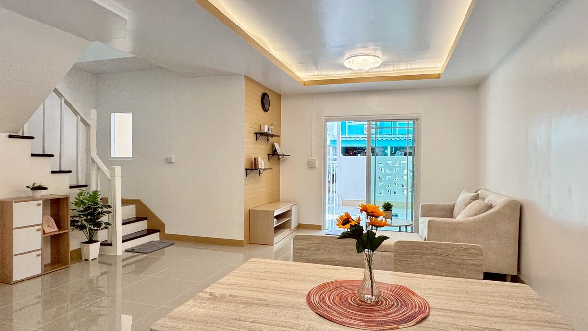 2-story townhouse for sale, Pruksa 21, Soi Khlong Thanon-Bang Yai, width 6 meters, newly decorated with furniture , urgent sale! 2-story townhouse, newly renovated, minimalist style. Pruksa Village 21, potential location in Soi Khlong Thanon. The front of the house is 6 meters wide, airy and comfortable, with the function of 3 bedrooms, 2 bathrooms, and comes with a free complete set of furniture. Near the Purple Line and Central Westgate, only 1.99 million, free transfer!