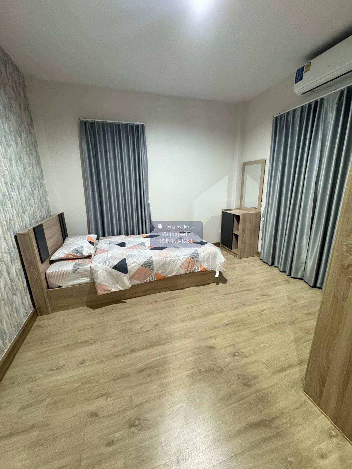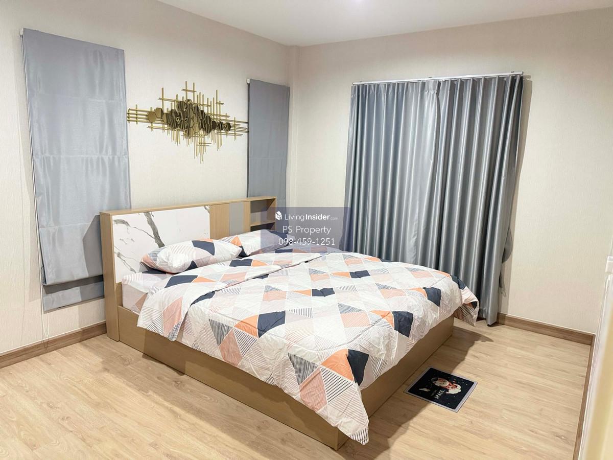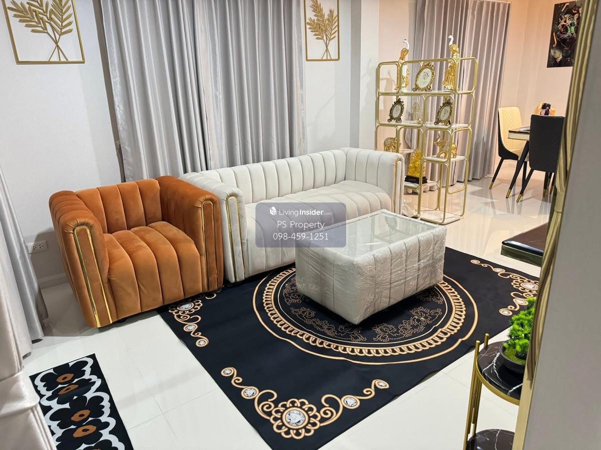 Price: 30,000 baht / month  Usable area: 160 sq.m.  Area: 40 sq.w. Floor: 2 3 bedrooms / 2 bathrooms / 1 living room / 2 parking spaces Amenities: CCTV, key card Access, fitness center, swimming pool, 24/7 security guard, co-working area, common area. Furniture included: TV, microwave, sofa, refrigerator, bed, air conditioner, water heater, Smoke Dispenser, shelf, TV cabinet, wardrobe, center table. House for rent! convenient transportation, near BTS, near the expressway, fully furnished Ready for viewing. Interested please contact: 📞Call center: Contact number 📱Hotline: Contact number 📲Whatsapp: Contact number 🖱️Line: @psproperty https://lin.ee/d8bpOBs Website: https://www.ps-property.co.th/