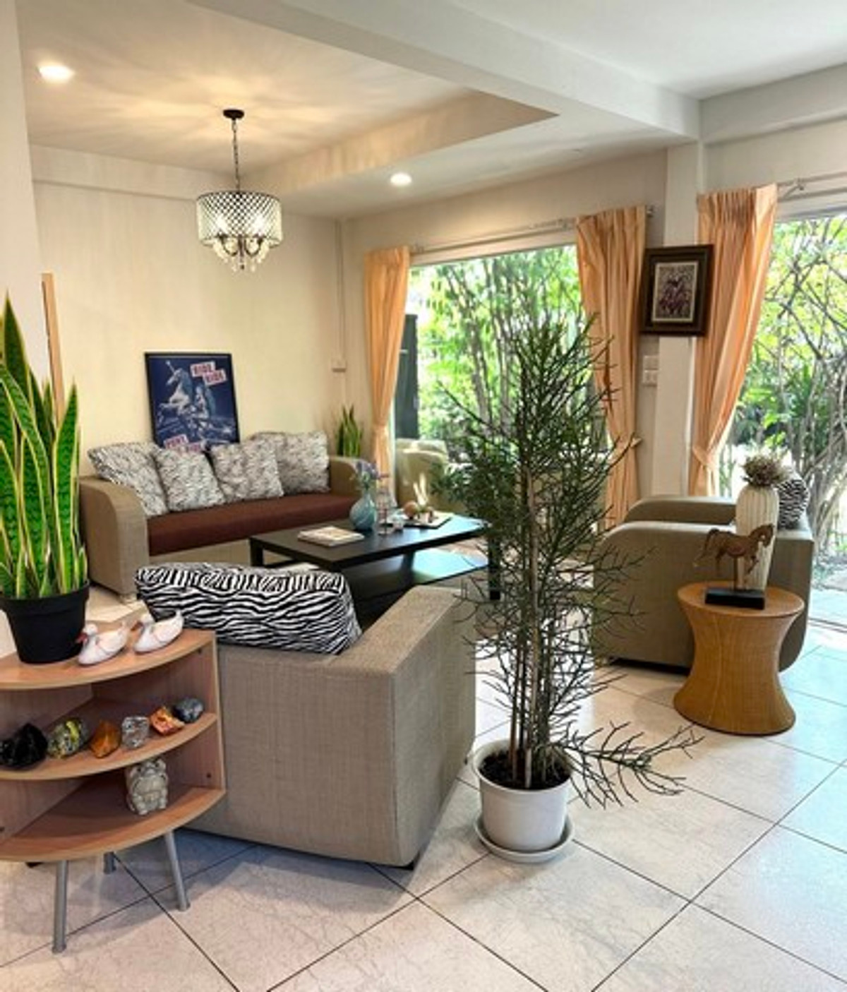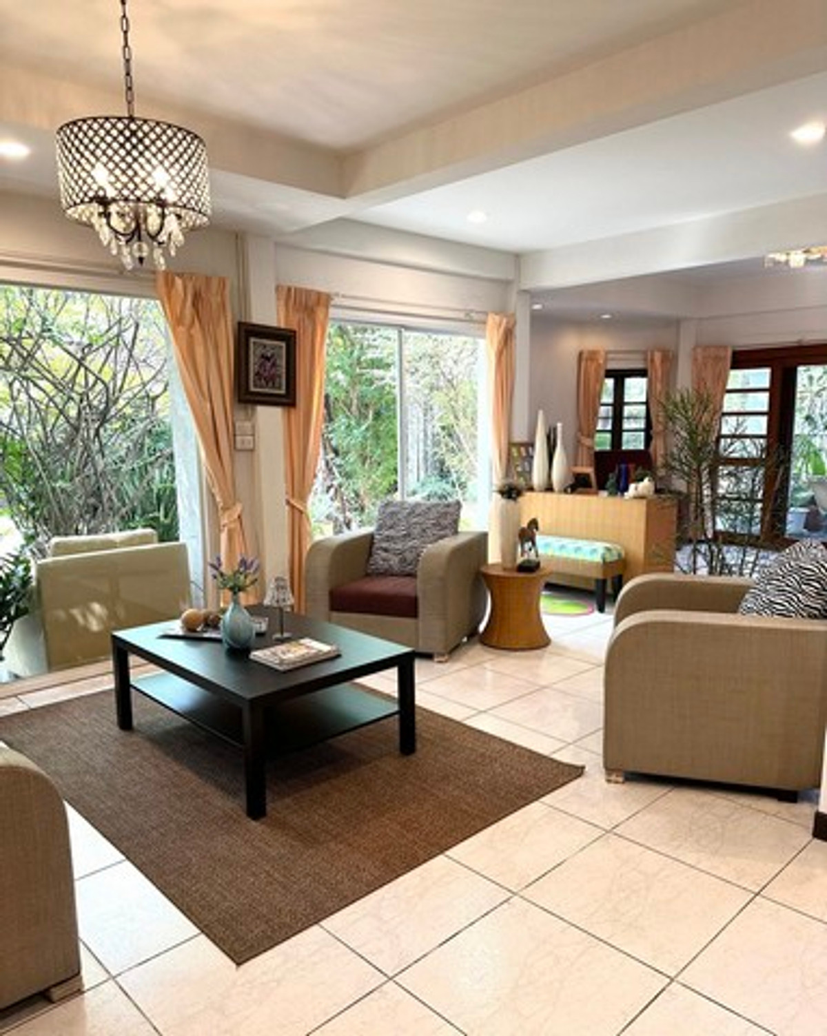 Code C7039 for rent, for sale, 2-story detached house, Sammakorn Village, Ramkhamhaeng 112, near Sammakorn BTS Station **For rent/sale** Rental price 69,000 baht/month (2 insurance in advance 1) Selling price 17,900,000 baht (seventeen million nine hundred thousand baht) If interested, contact Tel: Contact number Kit Line id : candy.456 Line Add Friend : https://line.me/ti/p/rHhjrvhm_z 2-story detached house, Sammakorn Village, Ramkhamhaeng 112, near Sammakorn BTS Station , area 120 square wah, usable area 245 square meters 4 bedrooms 4 bathrooms 1 Maids room + bathroom 4 air conditioners 2 parking spaces with complete amenities - public park - big lake with 3 lakes - swimming pool - fitness - 24 hour security system - complete with shops in the village, including coffee shops, restaurants, dessert shops - flea market and fresh market - post office, ATM, bank large detached house Shady atmosphere, beautiful trees, quiet, good location, can enter and exit in many ways. in front of the village Its a train station. Traveling is very convenient. There are many ways to enter and exit , shaded by trees, tropical style, glass all around, able to see the garden on every side. Very good atmosphere, quiet, excellent environment. Convenient transportation The highlight is the design of a wide, airy room with clear glass. You can see through to a beautiful garden. Airy and comfortable, not uncomfortable Convenient transportation. You can enter and exit both Ramkhamhaeng Road and Srinakarin Road in many ways, such as through Soi Ramkhamhaeng 60 (Lam Sali Intersection), Soi Muban Prueksachat, Krungthep Kreetha Road. Parallel motorway Rental price 69,000 baht/month (2 insurance in advance 1) Selling price 17,900,000 baht (seventeen million nine hundred thousand baht) #House for sale in Sammakorn Village Ramkhamhaeng #House for rent in Sammakorn Village, Ramkhamhaeng #Sammakorn #House for rent Location: Ramkhamhaeng Road 112, Saphan Sung Subdistrict, Saphan Sung, Bangkok 10240