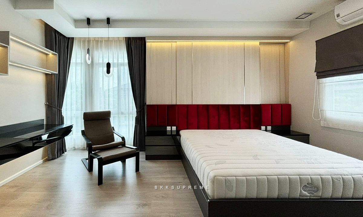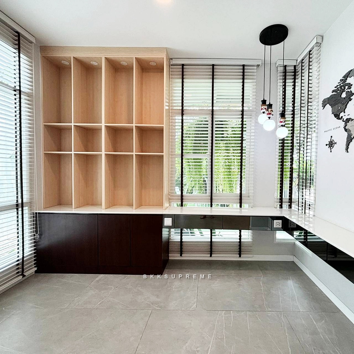 (For rent) ** Corner house in Manthana Bangna - Wongwaen, decorated and ready to move in. Installed with solar cells, saving electricity 50% *Rental price 120,000 baht/month* Details #256910 - Multiply house style - Area 85 square wah - Usable area 257 square meters - 4 bedrooms - 5 bathrooms - 1 relaxation room - 1 Kitchen - 1 maids room - 3 parking spaces - swimming pool, fitness, park, CCTV cameras around the village, security guard, key card, 24 hour security system * Location https://maps.app.goo.gl/h5p8uwEwdbTNm9Mg9 🍀 Contact for additional information Khun Bow : 0 9 8 - 4 5 6 – 9 9 7 7 LINE : @BKKSUPREME or click https://lin.ee/wjNzNjh