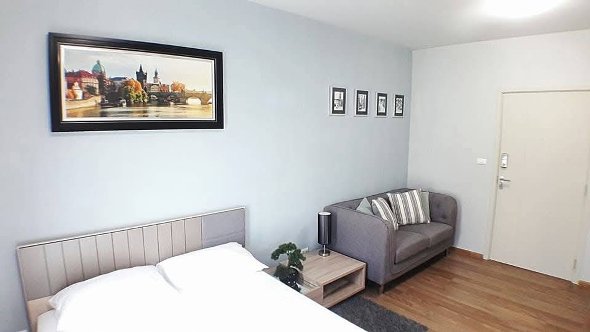 ***8,000 baht/month*** Including common fees Condo Unio for rent, Sukhumvit 72 Phase , 600 meters from BTS Bearing, has shuttle service , can move in from 1 February 2026 - 1 year contract - Room 22.64 sq m., Building E, 3rd floor / studio room / 1 kitchen / 1 bathroom. Furniture - 5 foot bed with good mattress / sliding door wardrobe / sofa and coffee table / TV cabinet / clothes rack / 1 air conditioner - There is an air conditioner divider between the living room zone and the kitchen - Added mosquito netting. Can be opened to the wind without mosquitoes entering the room - add additional bird netting to eliminate the problem of birds not coming to nest. Makes the back of the room not dirty Electrical appliances - Digital TV 40 / Top loading washing machine size 10 kg. / Refrigerator size 7.4 cubic feet / Microwave oven / Water heater with rain shower hatch / Sliding screen door Central area - Fitness center / Salt system swimming pool / Lounge room / Meeting room / Childrens room / Playground / Jogging zone in the garden / Lotus pond / Outdoor exercise equipment zone / parking under the building and many outdoors / there is a 7-11 in the project / there is a van to pick up and drop off BTS - near BTS Bearing / Bangna Expressway up and down / BITEC If interested, ask for more information / make an appointment to see the room, contact Line ID: stamp_157 Tel: Contact number Pat Tel: Contact number May Tel: Contact number Stamp https://line.me/ti/p/WYwt7ZKWRM