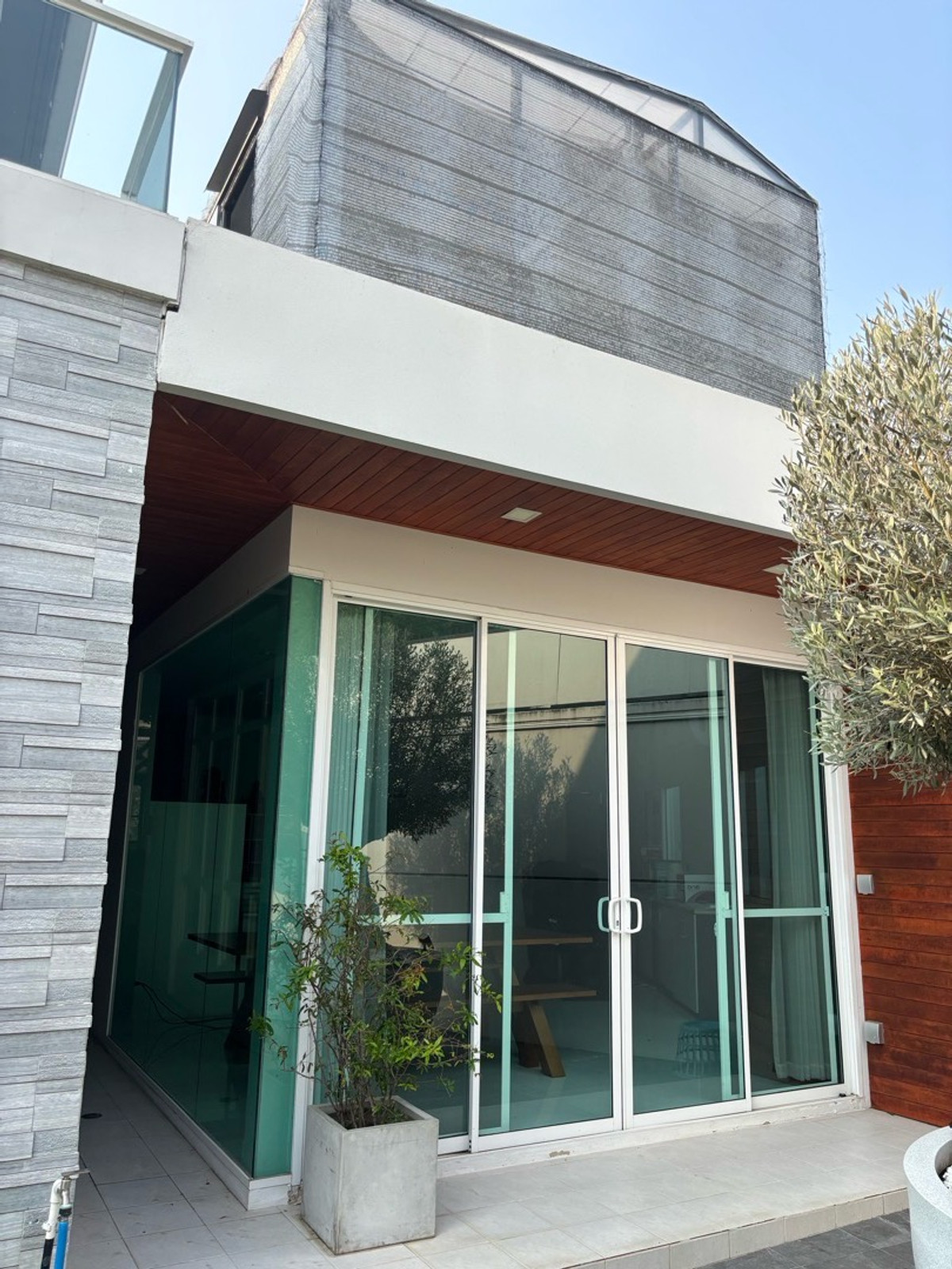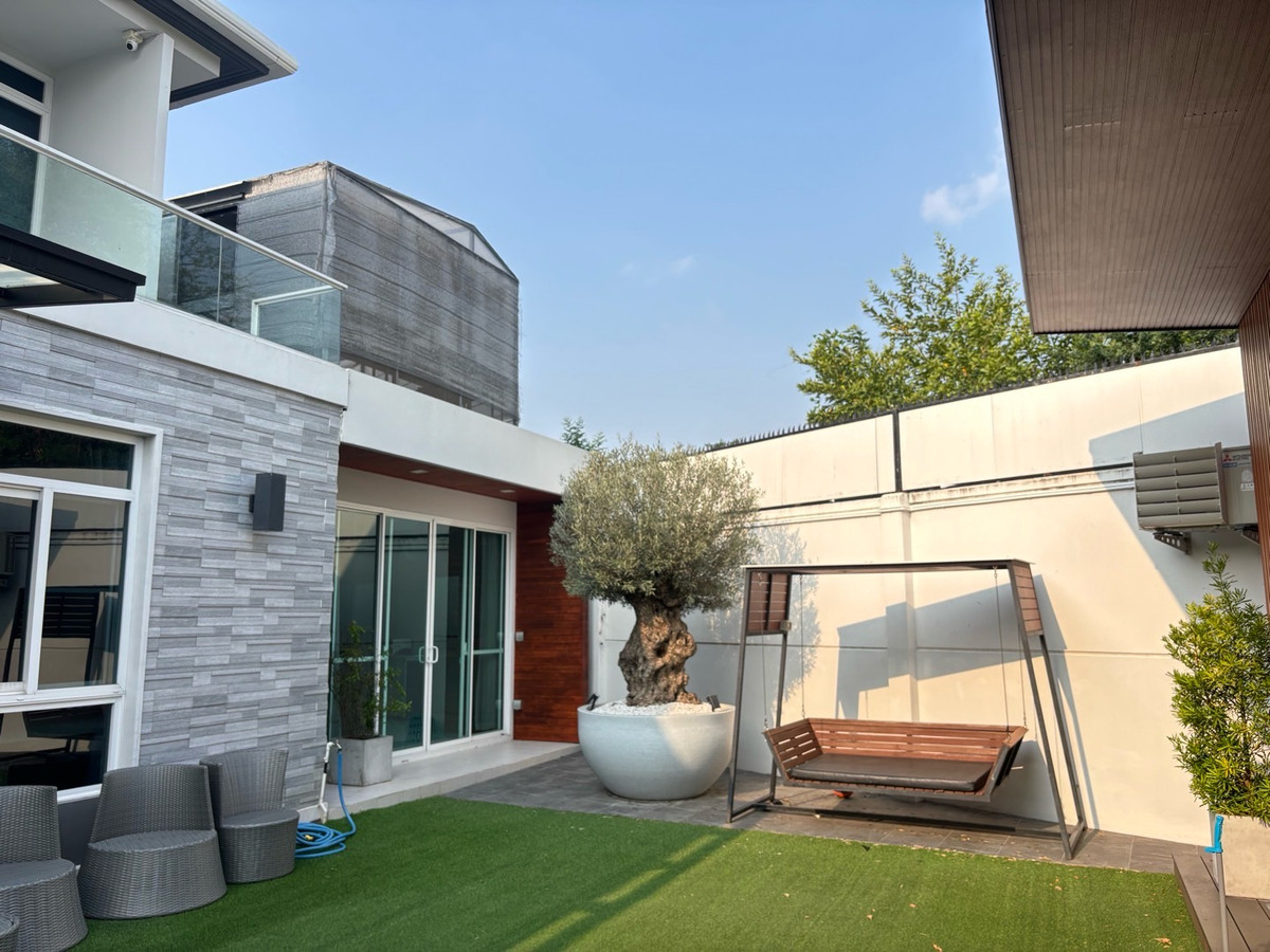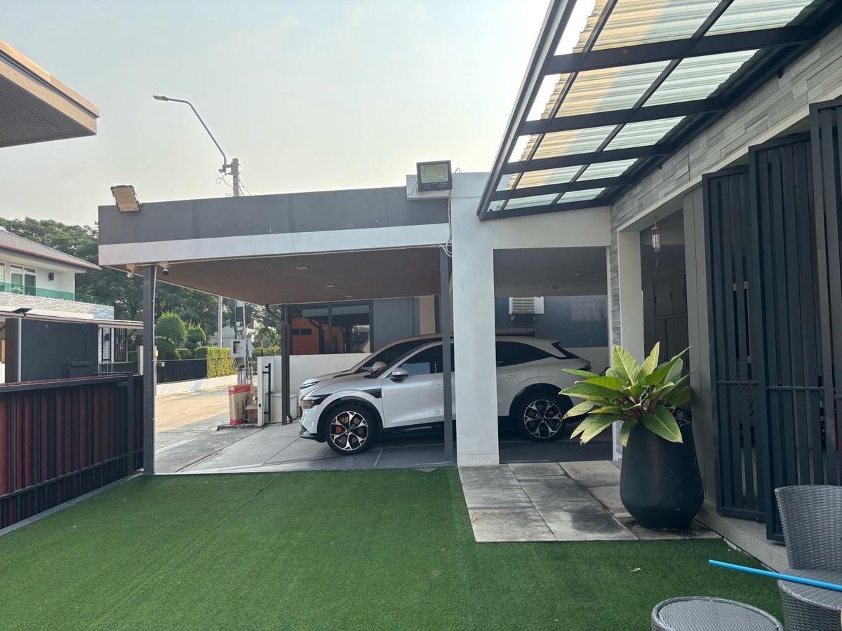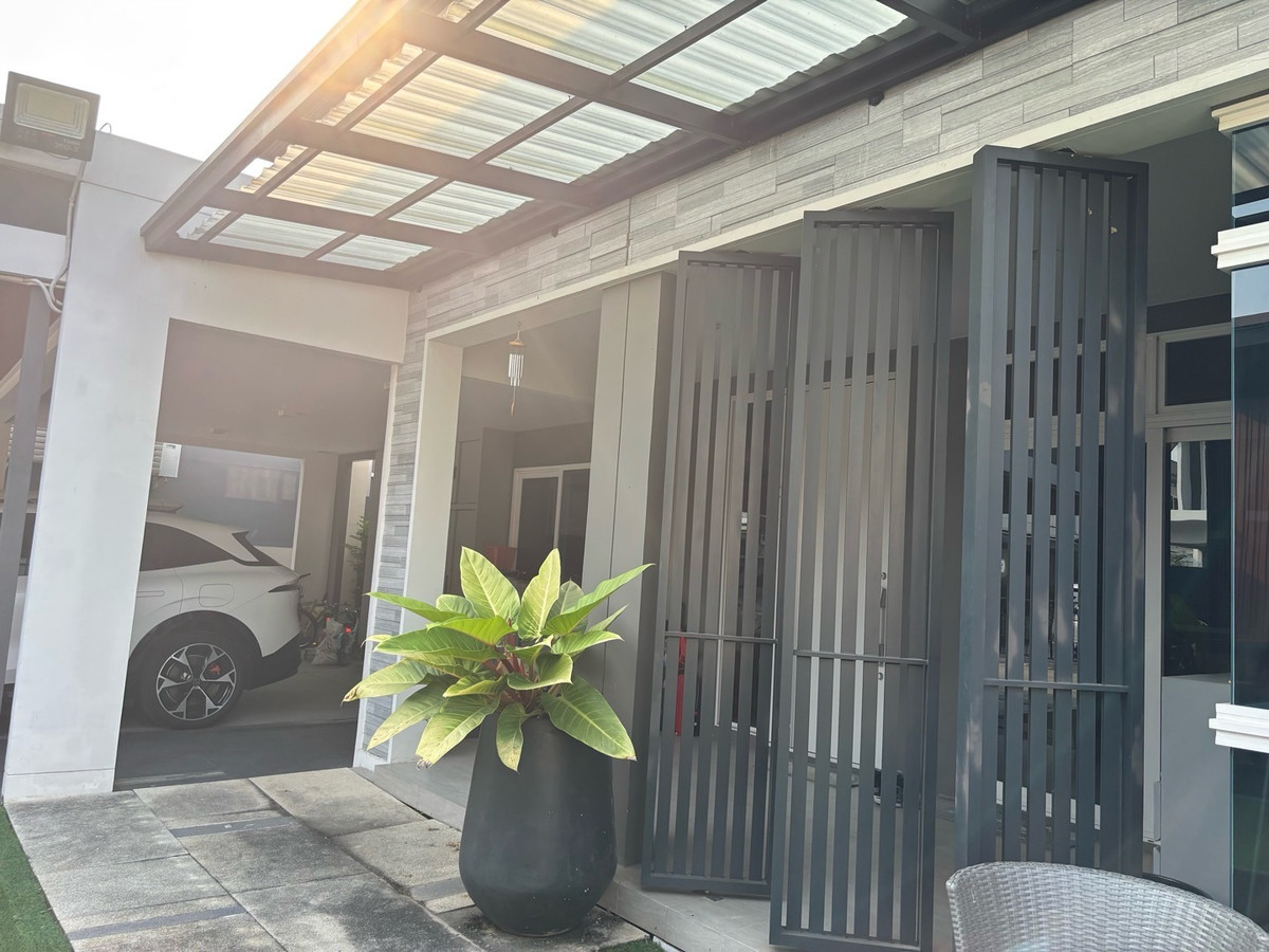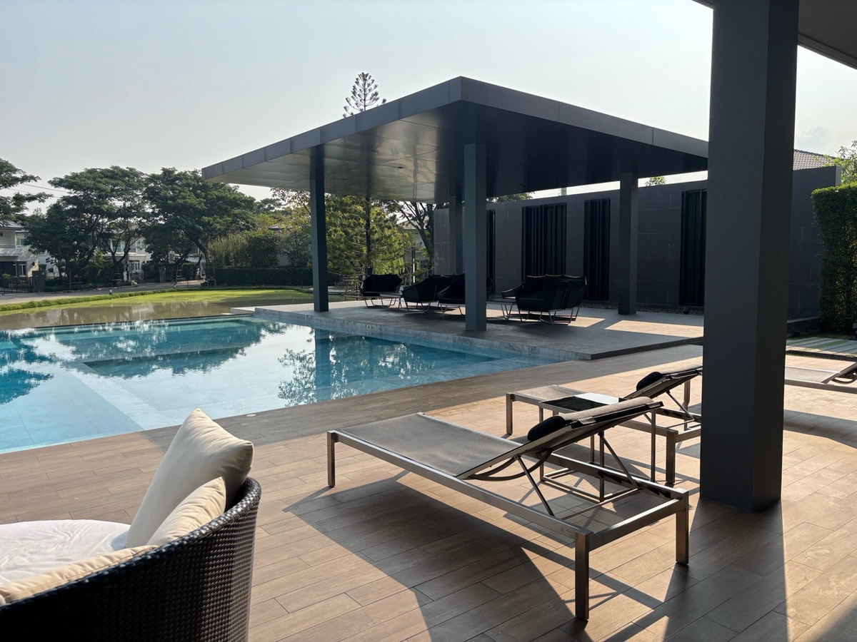 A house that isnt just selling space...but selling "Wealth" 🏦 money bag feng shui Empower your business ✨ 4 bedrooms, 7 bathrooms with a maids room 👉 Area size 120.4 sq m. 🏠2 floors, Expansio style, usable area 286 sq m. Add an office and additional classrooms 💼 Private office 56 sq m. + classroom 27 sq m. ⚡ Solar cells + TOU meter 🔐 Auto lock system | 8 CCTV | Negative pressure system inside the house and bedroom 🌳 plus olive tree price 100,000+ House for businessmen who "think big and want success every day" Prime location It is an alley that is complete within itself in terms of living, lifestyle and convenience. There is a whole shopping center. Concordian International School and Muang Kaew Golf Course