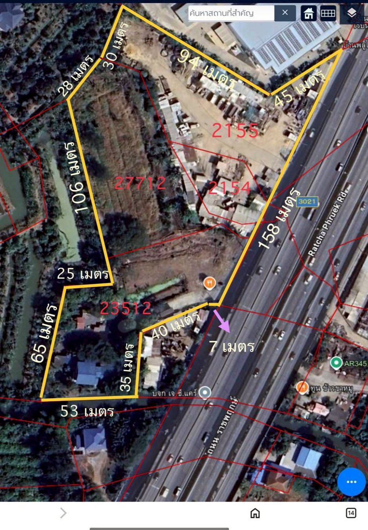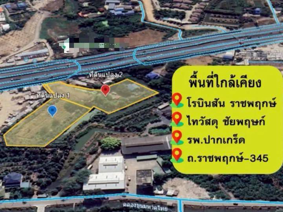 Land for sale, 2 plots next to each other, area: 11-1-22 rai Location: Ratchaphruek Road, Khlong Khoi Subdistrict, Pak Kret District, Nonthaburi , opposite side, between Robinson (Ratchapruek) and Pakkret Hospital 2 Details - Road frontage 158 meters - The original land was a durian orchard, filled in/adjusted to a certain level. (Filled/adjusted, increased approximately 20-30 cm.) - Total land: 11-1-22 rai, consisting of 2 plots of land next to each other continuously - Plot 1. Area: 4-2-52 Rai (652 sq.wa.) Area: 1-1-11 rai Area: 3-1-41 rai Total: 4-2-52 rai - Plot 2. Total area: 6-2-70 rai(2670 sq.wa.) Area: 3-1-35 rai Total: 6-2-70 rai fill/adjust Already level with the road with 3 phase electrical transformer in the land Nearby places -Robinson Lifestyle Ratchapruek, Thai Watsadu, Lotus's -Pak Kret 2 Hospital, Vibharam Hospital Pak Kret -Denla International School, Triam Udom Suksa Nomkla Nonthaburi School -near the expressway, Ratchaphruek Road (new cut line), Road 345 Accessing the land plot -from Rama 4 Bridge, run straight on the Ratchaphruek connecting road. On the Chaiyaphruek-Chaengwattana route, turn right at the intersection of Ratchaphruek-Chaiyaphruek Road observation point. Left hand side before turning right It will be Chaiyaphruek-Chaengwattana Village , turn right, on the left will be Thai Watsadu, next is Thanawan Lumber and Phonphromprathan Land Plot Co., Ltd. Located next to each other on the right hand side https://maps.app.goo.gl/sHj9GzQ4Q6eWegY19 Selling the whole lot for 160 million baht including transfer+tax+duty and broker 3% If interested, contact number 061.915.6619 088.569.8966 Line ID : @wanvisarproperty T.412