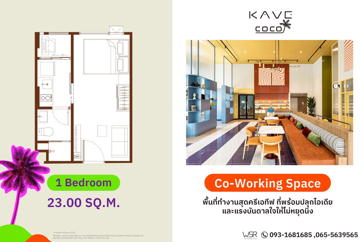 KAVE COCO BANGSAEN✨ New condo with resort feel. Just 5 minutes close to the Bangsaen sea* Make every day like relaxing with a super chill atmosphere and a central area with more than 50 activities* 🏖️ Cave Coco Bangsaen project from AssetWise Perfect design, complete functions, 2 swimming pools / 3 zones / an awesome lifestyle space. Answers to both living in and renting 📍 Location next to Burapha University, easy travel, close to Bangsaen beach, markets, shops, chic coffee shops. Live conveniently in every corner of the city 💰 Price starts at only 1.79 million baht* ✨ Installments start at just 4,900 baht/month* Beautiful room ready to move in immediately Make an appointment to view the project & ask for more information 📞 Contact number, Contact number 💚 LINE: @whitesand 👉 https://lin.ee/gSDbqPy