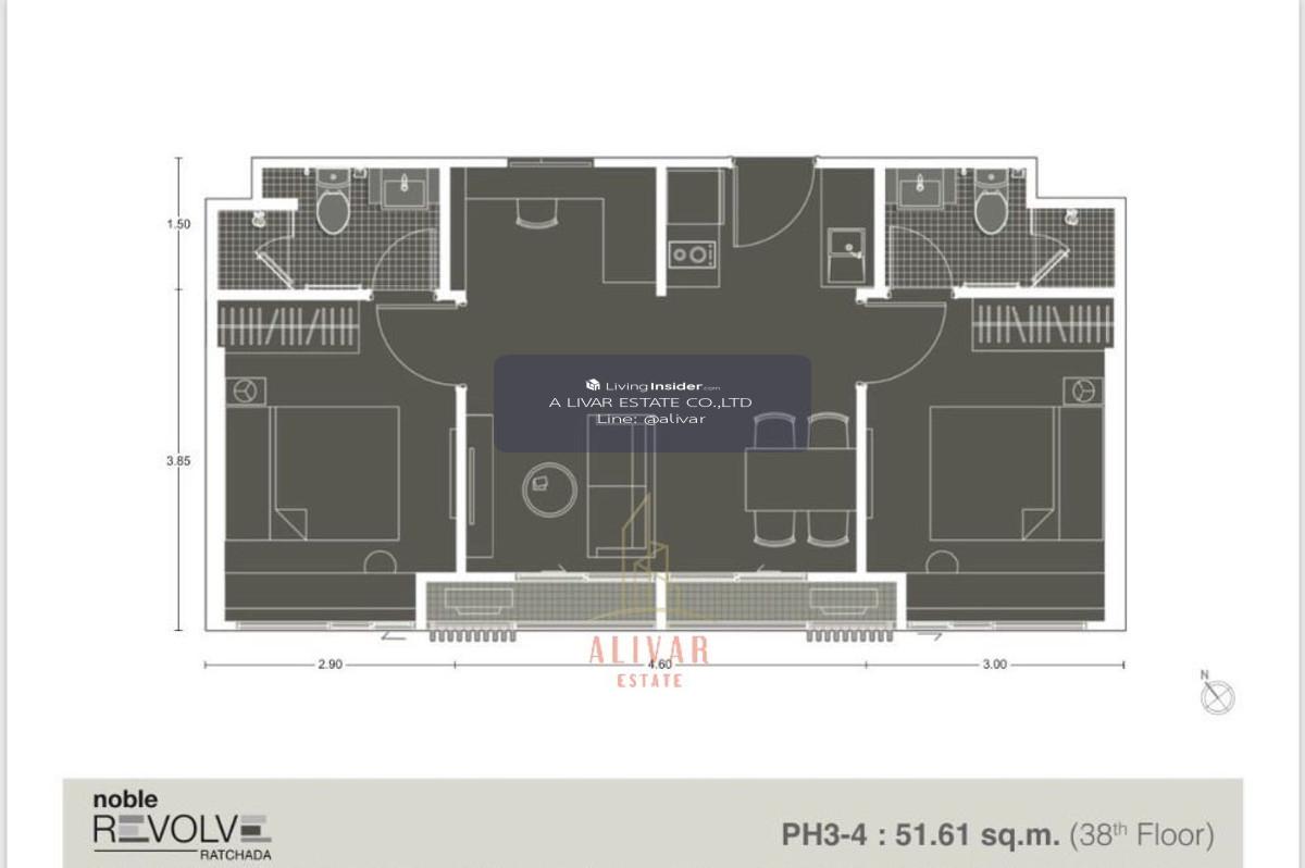 RC014426 Condo penthouse for rent at NOBLE REVOLVE RATCHADA near MRT Thailand cultural center Rent 42,000 baht/month (minimum 1 year contract) - 2 months security deposit, 1 month advance *Owner-occupied, never rented before Details : - Penthouse 51.61 sq m. - 2 bedrooms / 2 bathrooms (ensuite) - 4-meter high ceiling — spacious & airy - Top-floor Penthouse (38th floor), unblocked panoramic view - 2 fixed parking spaces (special unit) - Fully furnished & move-in ready - Digital door lock/ 50" TV/ 3 air conditioners - Italian leather sofa / Marble dining & work table Facilities: Salt system swimming pool / fitness / garden Nearby landmarks: Esplanade Ratchada 300 m. / Ratchada Soi 4 ​​350 m. - Ratchada Train Market 500 m. / BigC Extra Ratchada 700 m. / Central Rama 9 750 m. - Triam Udom Suksa School Pattanakarn Ratchada 1.2 m. / St. Dominic School 2.3 km. Location : Soi Ratchadaphisek 6, Ratchadaphisek Road, Huai Khwang Subdistrict, Huai Khwang District, Bangkok Contact Call Contact number LINE : @alivarClick link: https://lin.ee/l5lkLTu Whatsapp : Contact number Wechat : alivar2442 A LIVAR ESTATE CO.,LTD. Accepting consignments for sale-rent. Real estate
