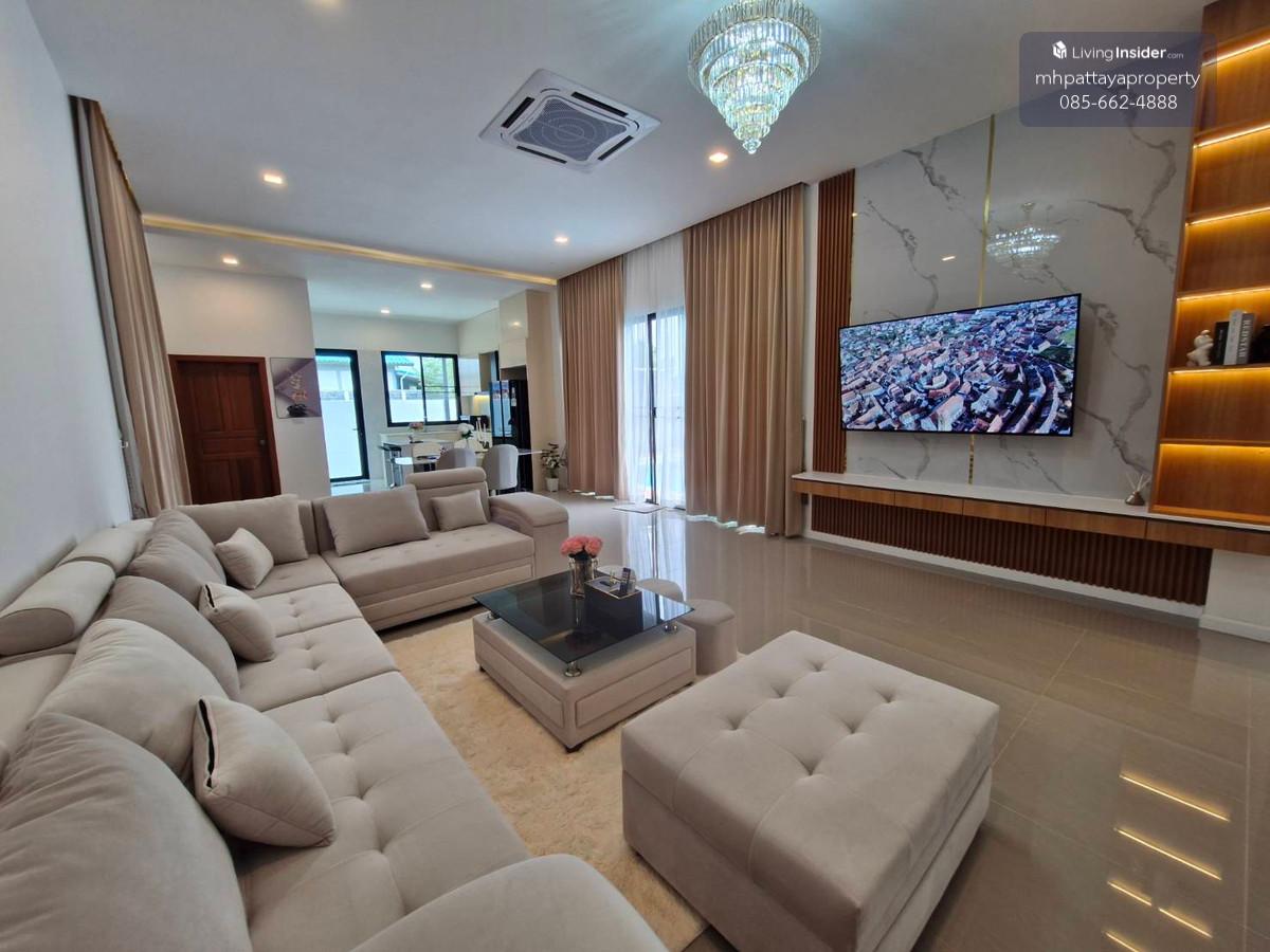 🏡 Luxury Detached House with Private Swimming Pool Quiet location, high privacy, and no common area fees — ideal for living or long-term investment. Property Details Land size: 92 sq.wah Usable area: 240 sq.m. 4 Bedrooms | 3 Bathrooms Private swimming pool 4×8 meters (Salt system) Jacuzzi in the master bedroom Wide road access 8 meters Parking for 2 cars No common fees Furniture & Appliances Included 70-inch TV Refrigerator Built-in oven & microwave 4 air conditioners Automatic remote gate Water tank 4,000 liters ✨ Spacious layout, modern comfort, and move-in ready Perfect for family living or investment property 💰 Selling price: 7.89 Million THB 📞 Contact us today before it’s gone Khun Muk: Contact number Khun Min: Contact number Khun Fah: Contact number 🌐 www.mhpattayarealestate.com