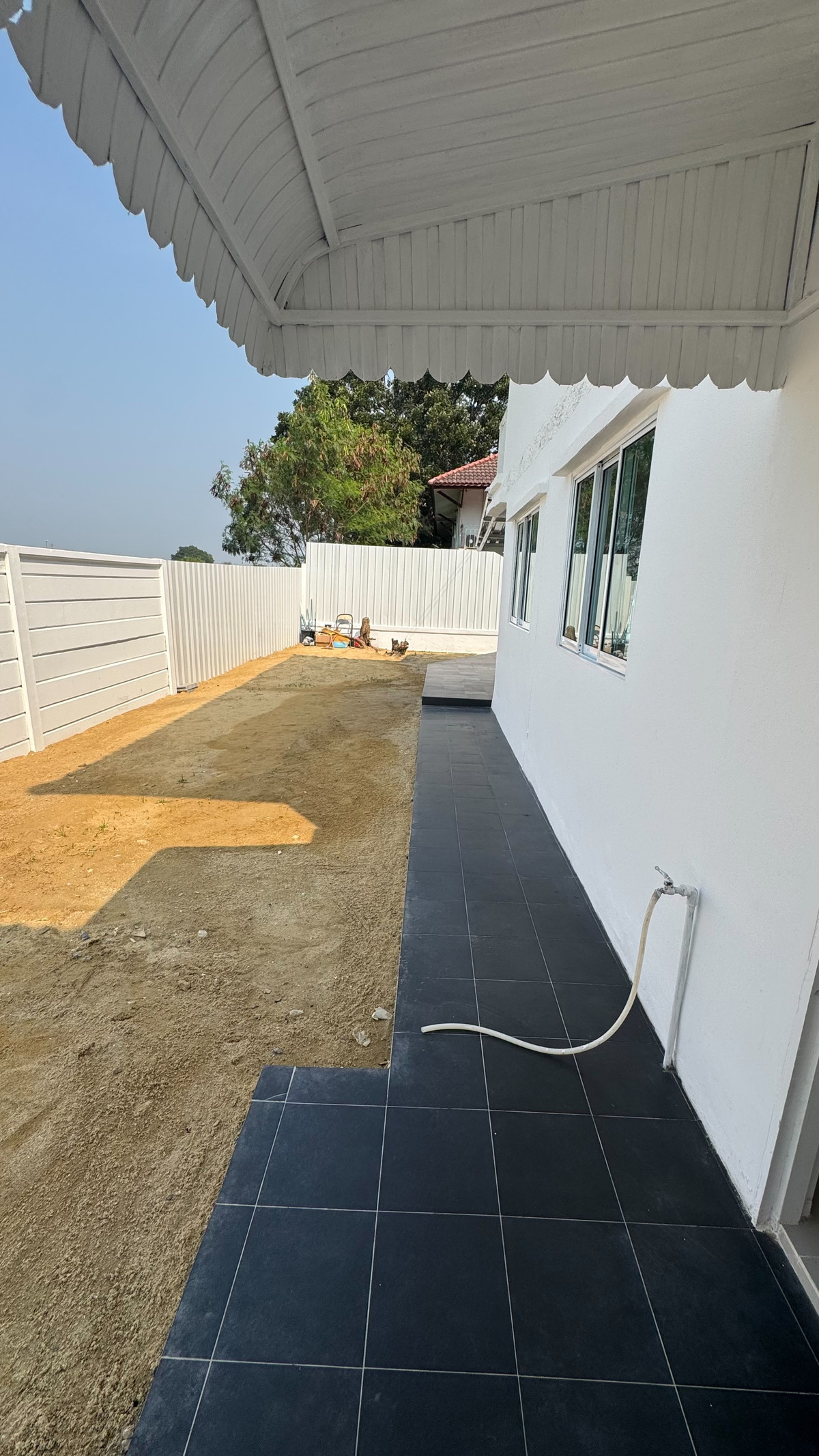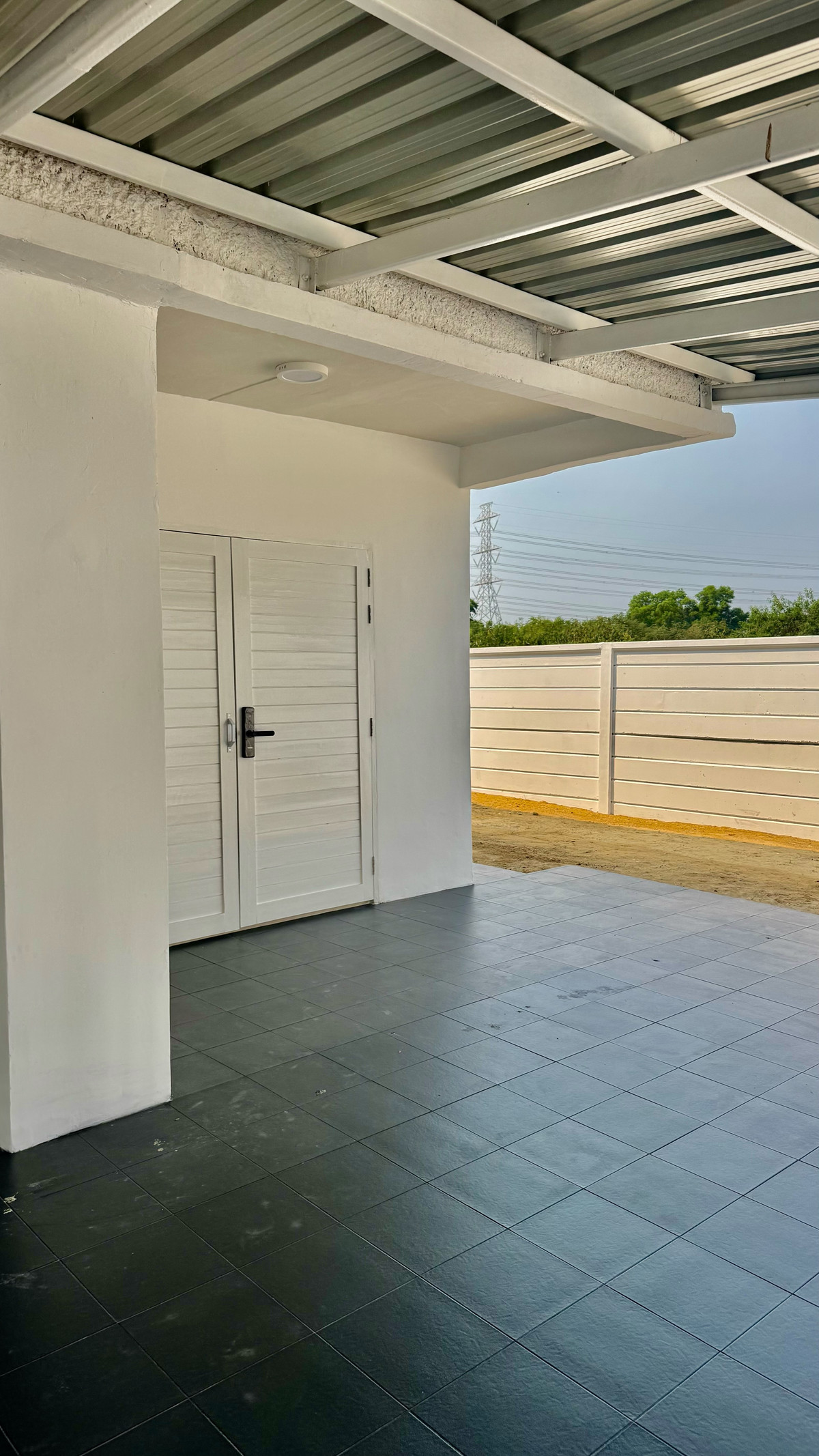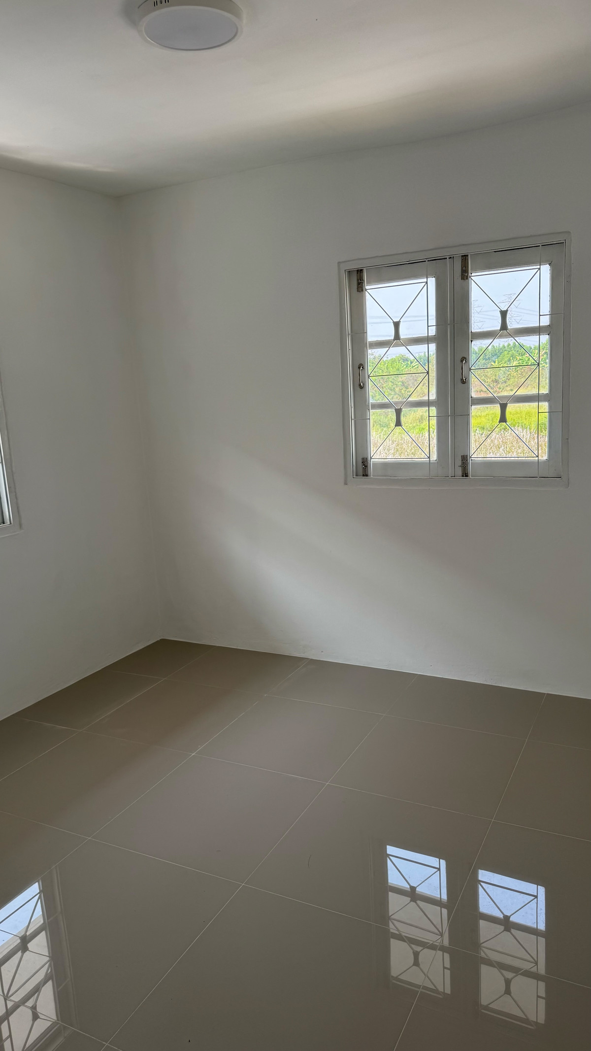 House on the edge of a rice field view, two floors, 3 bedrooms, 2 bathrooms, a kitchen, parking for 2 cars in the house, side area approximately 20 square meters.