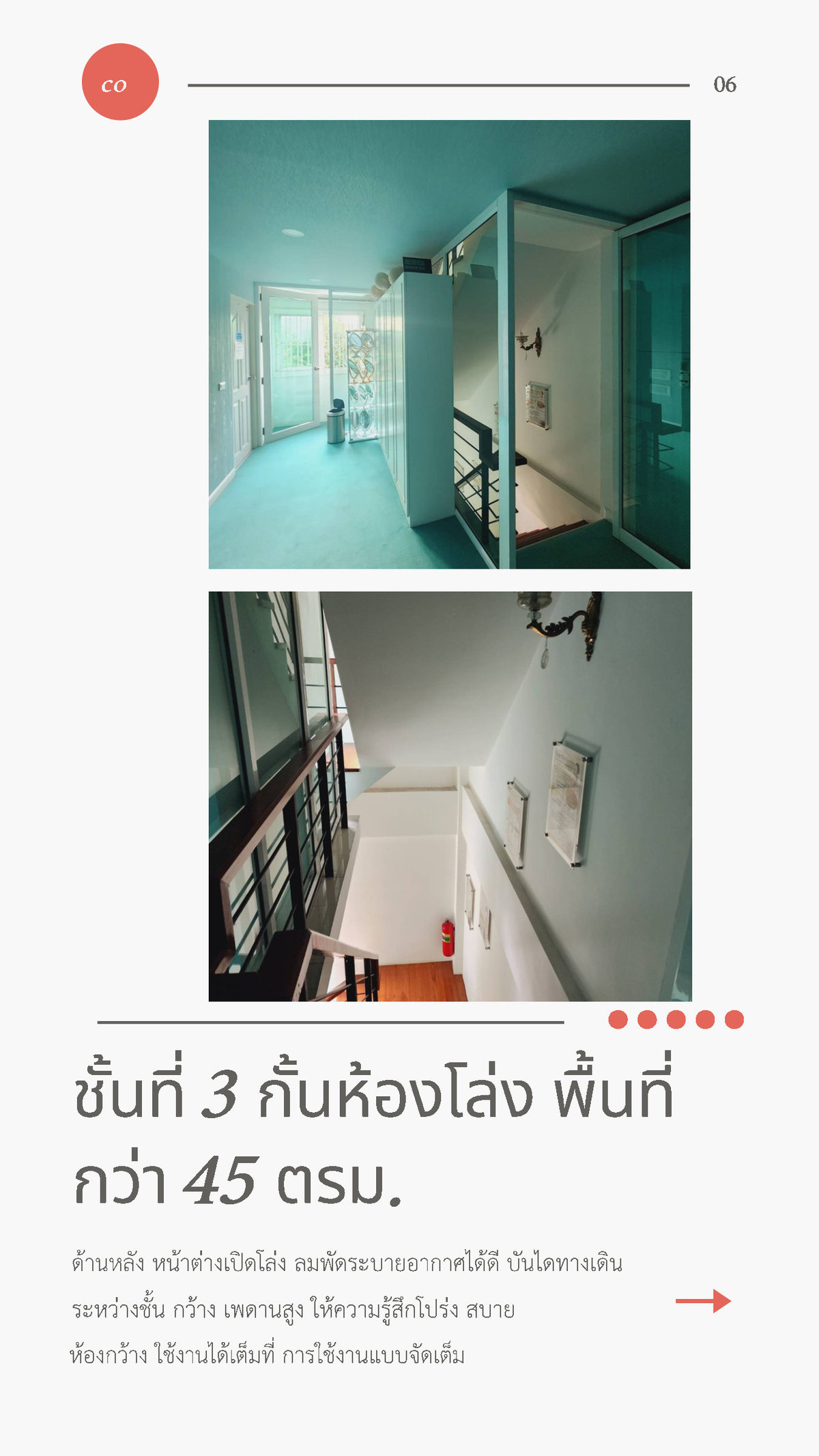 Is it a home office or shop? Suitable for an office or clinic, next to the main road, clearly visible. 5 floors, width 5.2 m., large house, usable area approximately 300 sq m., 2 floors of office/shop space and another 4 bedrooms, 4 bathrooms, parking for 3 cars, road in front of the building is 16 m wide. City center location : Soi Lat Phrao 71 (Nakniwat Road) next to a 4-lane main road in front of Soi Nakniwat 9 is a main road with buses running. In the heart of Ladprao Can go off the road along the Ekamai-Ramindra Expressway. Lat Phrao Road 53 (Chokchai 4) Lat Phrao-Wang Hin Road