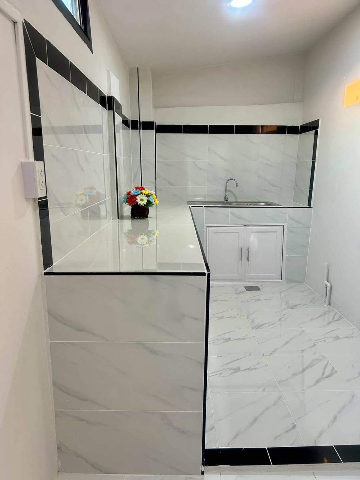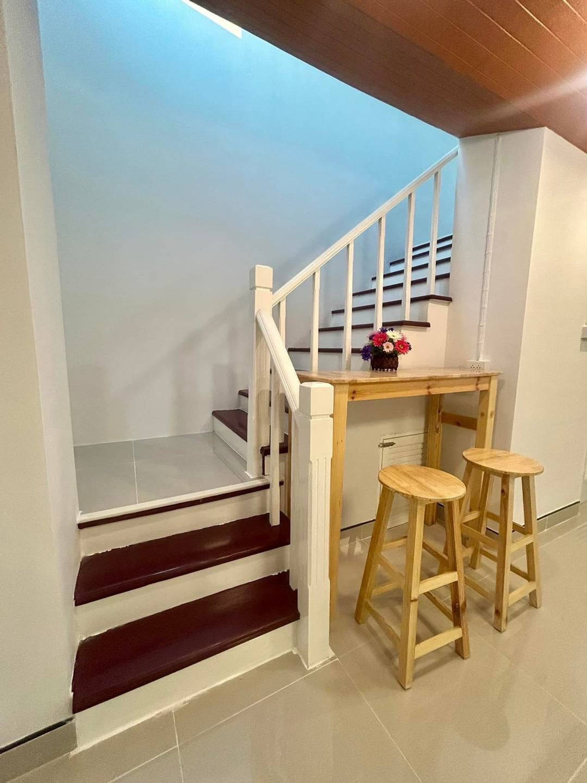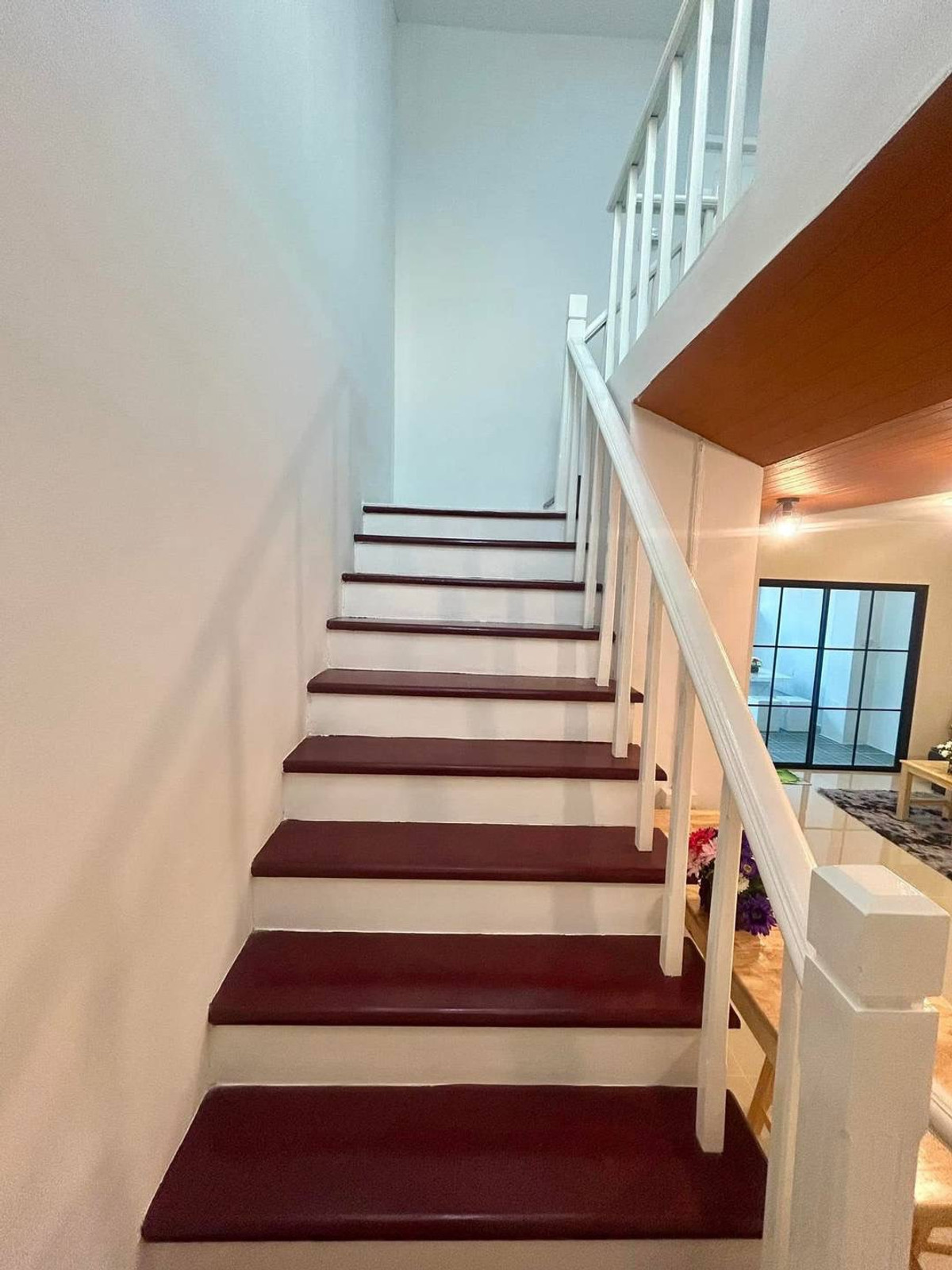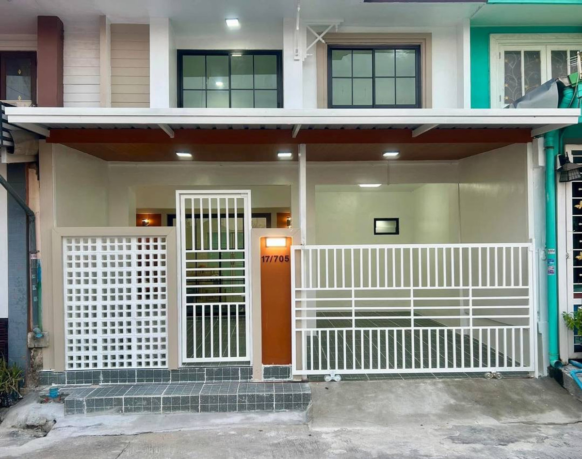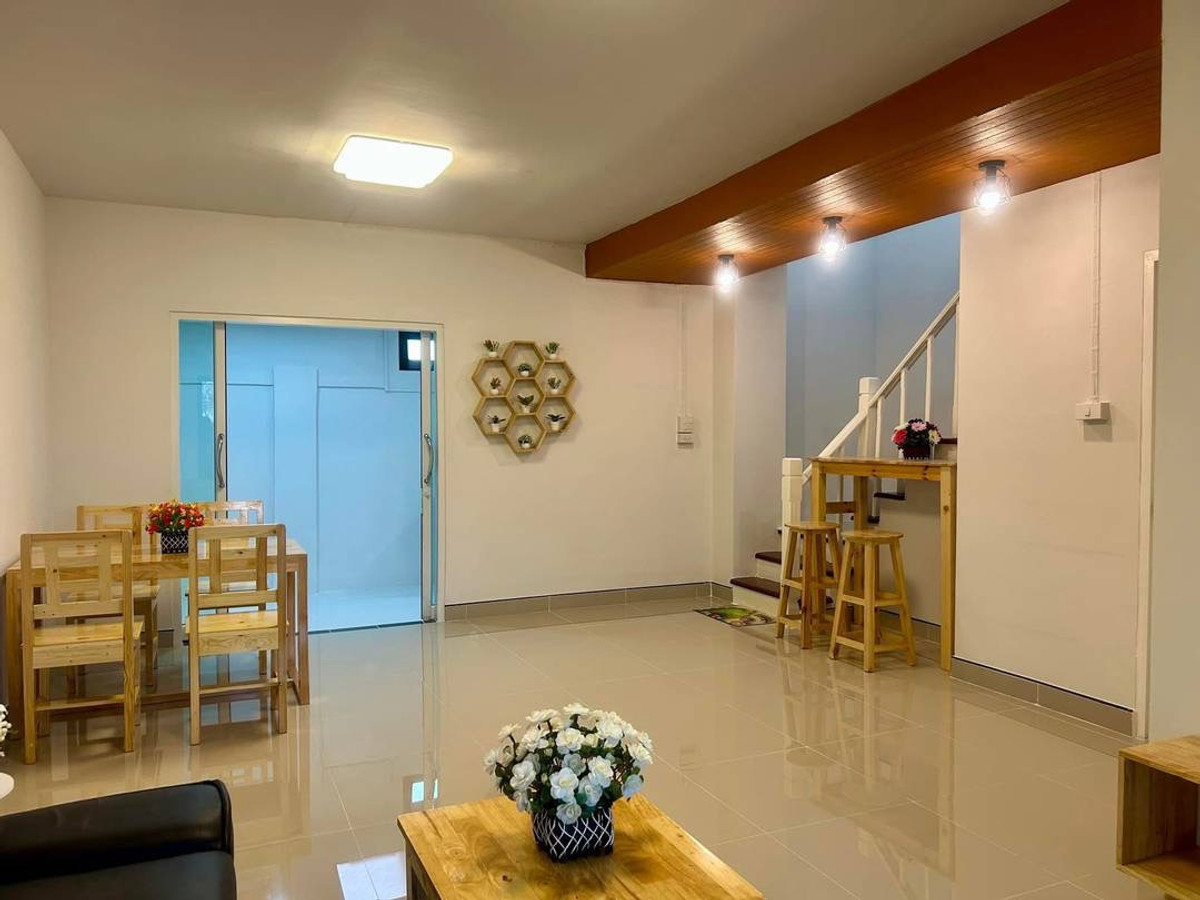 Urgent sale! 2-story townhouse, potential location in Pruksa Village 10, located on a spacious main road, able to open a business. Newly decorated and renovated throughout. With complete set of furnit