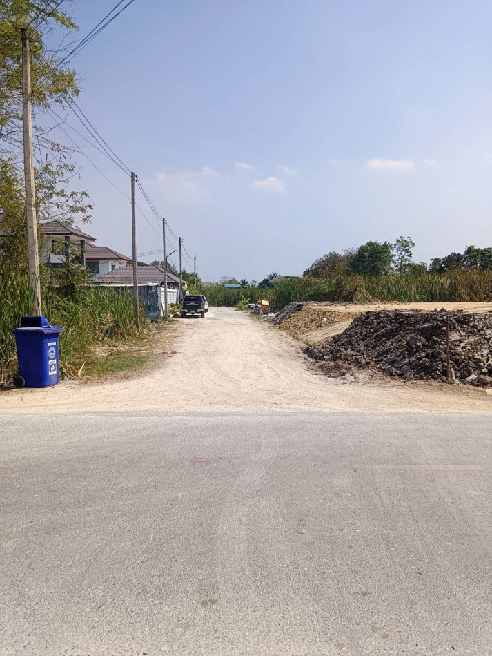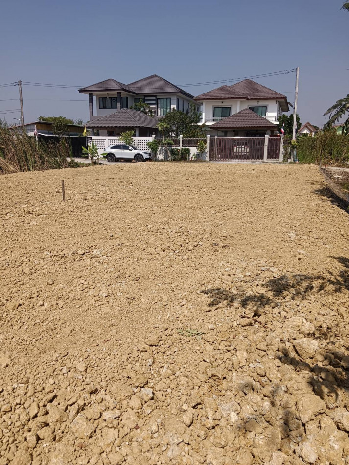 Land for sale, 100 square wa (14 x 28 meters). Leveled and ready for building a house. Somphong Village (Khlong Yong - Salaya), Phutthamonthon District, Nakhon Pathom Province. Good environment, a com