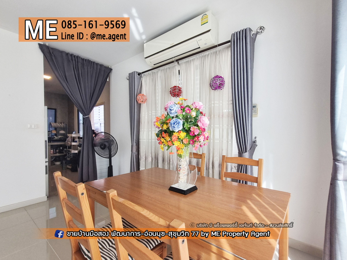 Cheapest in the project Single house for rent, Pruksa Ville 73, Phatthanakan 38, with furniture and electrical appliances, near Ekkamai, Thonglor, Sukhumvit, call Contact number (RBA30-40) .Just bring a bag of clothes. You can move in right away. The village is peaceful, suitable for relaxing . Prime location, can enter and exit many routes. Phatthanakan - On Nut 39 - Srinakarin .-2-story detached house - Area 40 sq m, usable area 135 sq m - 3 bedrooms, 2 bathrooms, 1 kitchen - 2 parking spaces - 3 air conditioners - Fully furnished for use . Rental price 35,000 baht >>Low floor contract 1 year<< If interested, contact us at ME Property Agent Tel. Contact number K.Mook LINE : @me.agent IG : mepropertyagent TIKTOK : meagentYouTube : @meagent5131 Follow and see beautiful houses on the ME page. Inbox message FB : Used houses for sale. Phatthanakan-On Nut-Sukhumvit 77 by ME Property Agent .Common area – The Bale House – Salt system swimming pool – Public park – Double door lock system – Auto Access Card– CCTV – 24-hour security guard . Nearby places -The Mall Ramkhamhaeng 5.9 km. -Kasem Bundit 5.3 km.-London Street 4.3 km. -Picka Daily 3.9 km. -Max Value 3.1 km. -Gateway Ekkamai 7.8 km. -Thanya Park 4.0 km. - Triam Udom Suksa School Phatthanakan 4.8 km. - Phatthanakan Fresh Market 4.6 km. - Samitivej Srinakarin Hospital 4.7 km. -Tesco Lotus 4.2 km.-The Nine Rama 9 8.5 km. -Seacon Square 4.9 km. -Paradise Park 6.1 km. #MEpropertyagent #ONEStopService #secondhand house #Baan Phatthanakan #Baan On Nut #House ready to move in #Townhouse On Nut #Townhouse Pattanakarn #Single house ready #Twin house #Pruksa Ville 73 #Phatthanakan 38 #On Nut #Srinakarin #Ekkamai #BTS On Nut #AirportLink Hua Mak #Single house