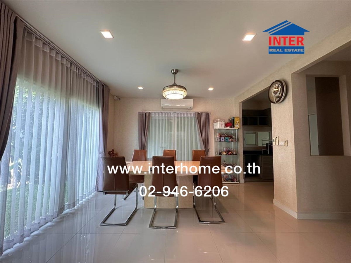 Mr. Nakarin Watcharasena (Dome) Contact number: Contact number Office: Contact number Inquire via Line. https://lin.ee/xTo07Pn Line ID: @interhome Property code: 66049 Size 61.8 sq m Location: Saransiri Village, Tiwanon, Chaengwattana 2, Bangkok-Pathum Thani Road. Muang Pathum Thani, Pathum Thani Details near Phraharuthai Nonthaburi School Near Duangkaew Market, Central Chaengwattana Saransiri Tiwanon Chaengwattana 2 Village (Saransiri Tiwanon Chaengwattana 2) 2-story detached house for sale 2-story detached house for sale, Bangkok-Pathum Thani Road, Tiwanon Road, Ban Mai Subdistrict, Mueang Pathum Thani District. Pathum Thani Province 2 floors, 3 bedrooms, 3 bathrooms, 1 kitchen , has parking for 2 cars, 5 air conditioners Decoration: Beautiful house, ready to move in Wallpaper is installed throughout the whole house. The ground floor is covered with granite countertops . The floor upstairs is covered with laminate . Built-in kitchen counter . Built-in wardrobe, has a lawn next to the house Good location, nearby places: near Phraharuthai Nonthaburi School Near Duangkaew Market, Central Chaengwattana , Robinson Srisamarn , Thai Watsadu Srisamarn , Muang Thong Thani Nawaminthrachinuthit Horwang School, Nonthaburi, Suankularb School, Nonthaburi St. Francis Xavier School , Sukhothai Thammathirat Open University World Medical Center Hospital Convenient transportation: Tiwanon Road Srisamarn Road Bangkok-Pathum Thani Road Near Srisamarn Expressway, near the Red Line Interhome Realty Estate Company Limited Interhome Realty Estate www.interhome.co.th Tel. Contact number https://www.interhome.co.th/propertydetail.php?propcode=66049