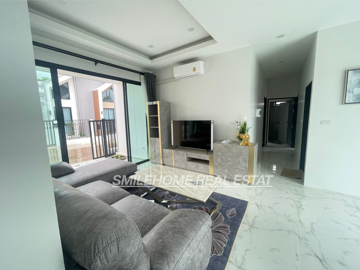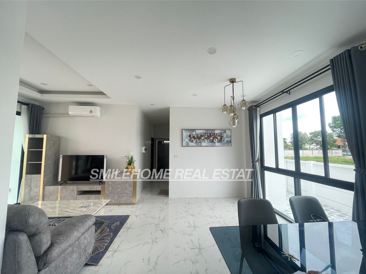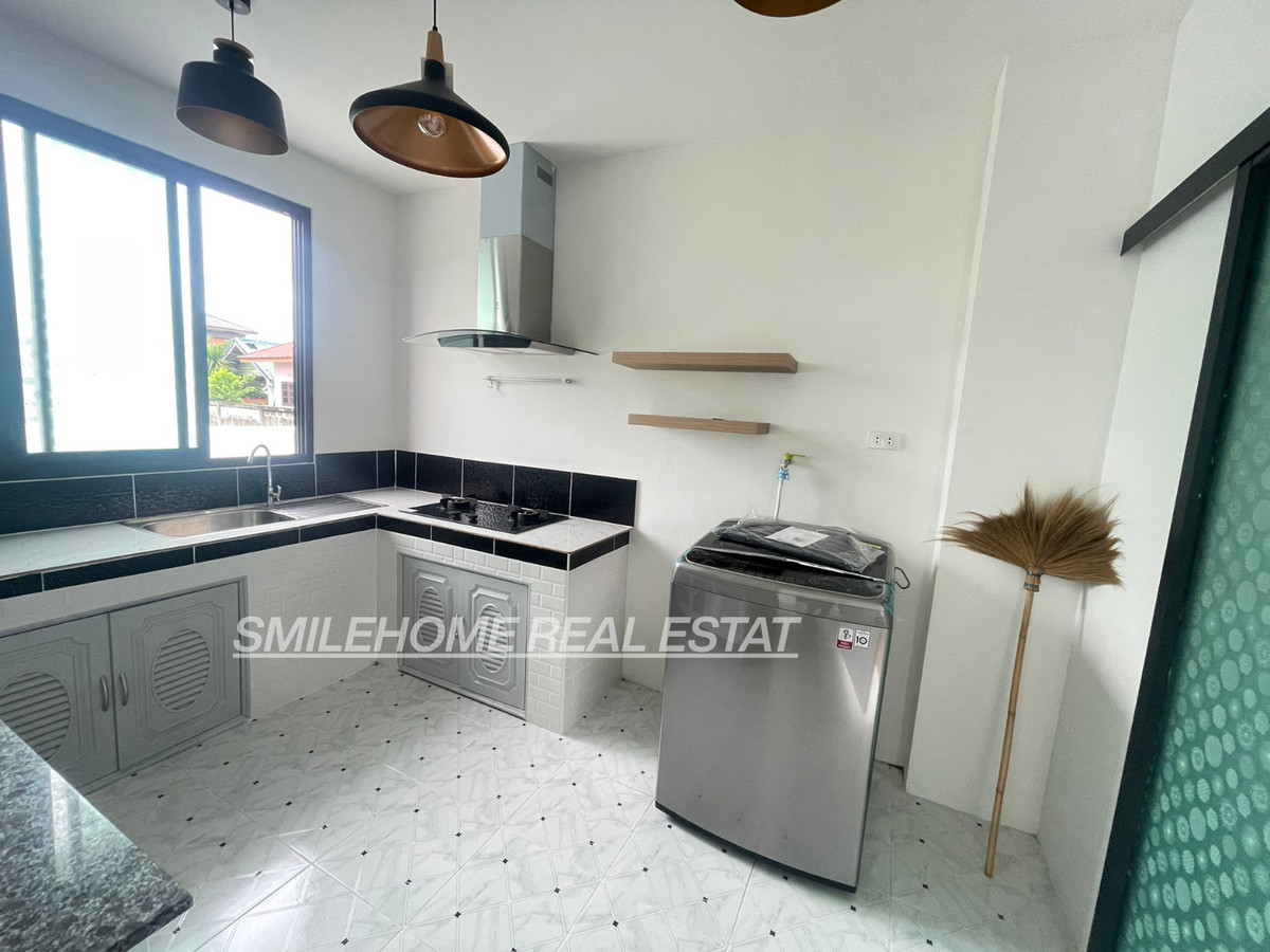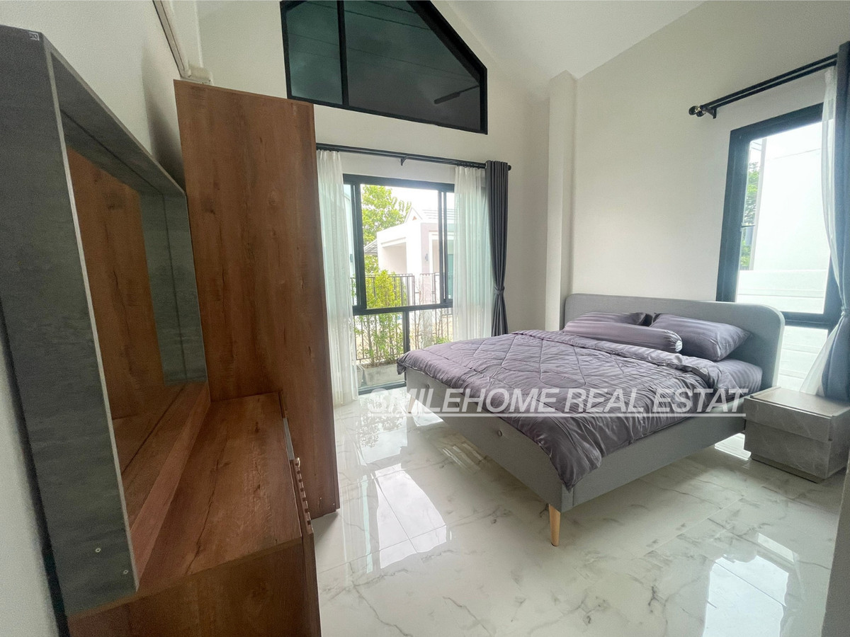 Modern house for rent one-story house 3 bedroom, 2toilet, 1 kitchen 2 parking 18,000/month fully furniture - 4 air condition (3bedroom, 1living room) - 2 bedroom (Bed, mattress, dressing table, wardrobe) - 2 water heater - living room (sofa, Smsty TV, dining table) - kitchen room (microwave, gas stove, fridge, washing machine) The contract minimum 1 year Pay 3 Months (2months deposit + 1 month in advance)