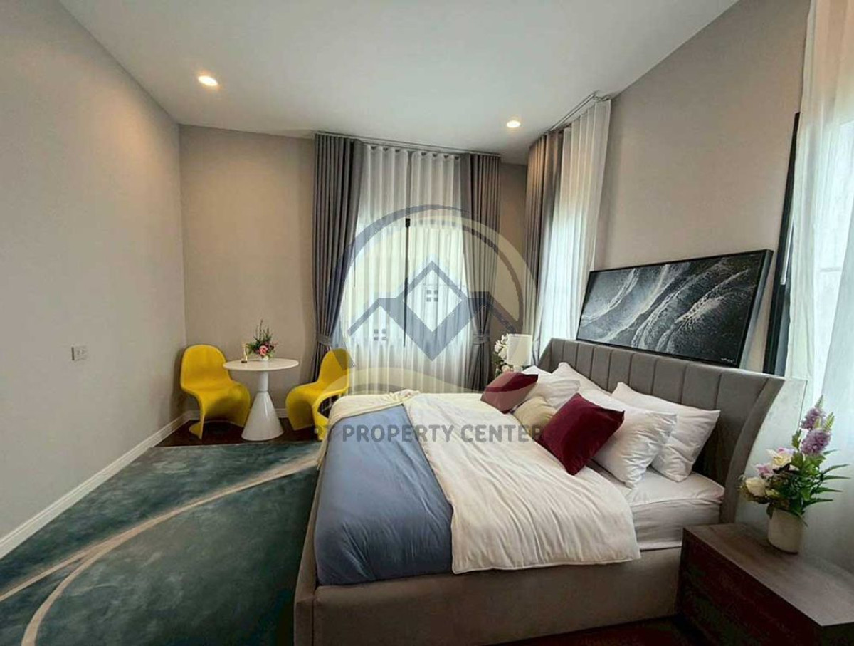 Details : • Large, high-end, 2-storey luxury detached house, designed for superior living • Land size: 90 square wah • Usable area: 378 square meters • The front of the house faces north, helping to receive good wind and not strong sun all day • 4 rooms / 5 bathrooms / 2 living rooms / 2 kitchens / 6 parking spaces • Built-in furniture, beautiful design, selected quality materials. With some raised furniture Fully decorated • Approximately 8 air conditioners, supporting use in every area of the house • There is a separate walk-in closet room. Helps increase orderliness and luxury • There is a bedroom for the elderly on the first floor, designed for convenience and safety. Supports living of all ages • The house is designed in the Modern French Renaissance style, outstanding, unique, elegant • Suitable for executive families. or residents who have a modern lifestyle and give importance to quality of life • The project has a shady, quiet atmosphere suitable for relaxation and long-term residence • The common garden area is larger than 6 rai, providing true privacy and green space • Quality house, strong structure. Outstanding design Under Sansiri level standards (Sansiri) • The house is in very beautiful condition. Open price for negotiation. The owner is kind and ready to consider the offer and can negotiate. Nearby places : • Masket Place Theparak / Big C Sukhapiban 5 / Plearnary Mall • Makro Theprak / Thanommit Market / KIS International School • Ying Charoen Market / Don Mueang Airport Transportation : • Expressway : Chalong Rat Expressway, Uttaraphimuk Elevated Expressway • BTS Light Green Line, K.P.O. Intersection Station, only 3.5 kilometers away • Can travel on many routes. Theparak Road, Watcharaphon Road, Phahonyothin Road Location: Narasiri Project Phahonyothin-Theparak, Theparak Road, Tha Raeng Subdistrict, Bang Khen District, Bangkok Special price 29,900,000 baht _______________________ 𝗣𝗧 𝗣𝗥𝗢𝗣𝗘𝗥𝗧𝗬 𝗖𝗘𝗡𝗧𝗘𝗥 Interested, ask for more information : TEL : Contact number (Khun Nueng) Office : Contact number Website : https://ptpropertycenter.com Line : @ptpropertycenter or click : https://lin.ee/iZi878D 𝗣𝗧 𝗣𝗥𝗢𝗣𝗘𝗥𝗧𝗬 𝗖𝗘𝗡𝗧𝗘𝗥 "Service with heart. Like family members" Accepting house sales | Free credit consultation | Taking care of every step