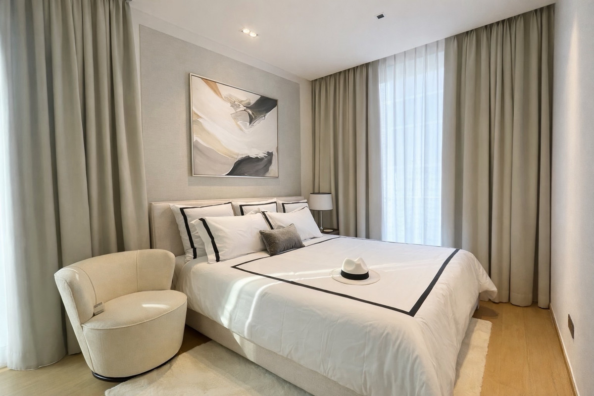 🔹 28 Chidlom 🔹 • Size: 90 sq.m. • Floor: 4th floor (Villa Tower) • 2 Bedrooms • 2 Bathrooms (genuine marble) • 2 Parking spaces • Extra-wide unit with 13-meter frontage • Walk-in closet in both bedroo