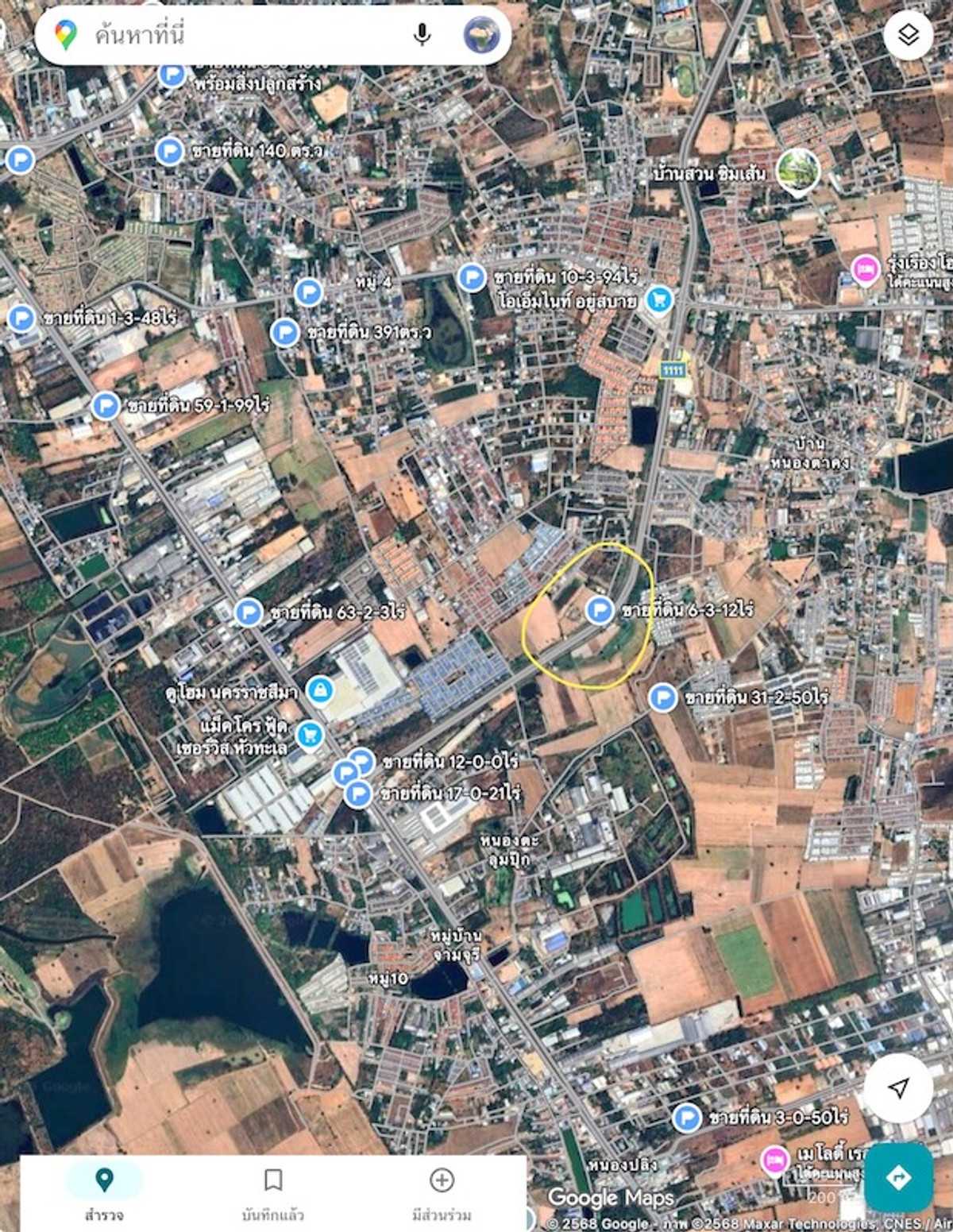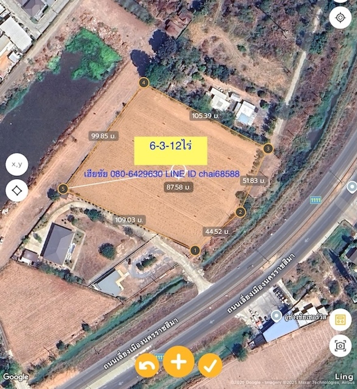 Land for sale next to the bypass road, bypassing the city, area 6-3-12 rai, opposite Supalai Village, near Makro, near Do Home, near Suranaree Industrial Zone. The location is suitable for development into a commercial building, warehouse or other industrial factory. Land near the bypass road intersection, Highway 1111. Selling price 5 million per rai. If interested, ask for details, contact Hia Chai Contact number LINE ID chai68588 page, land for sale in Korat city/consignment sale.
