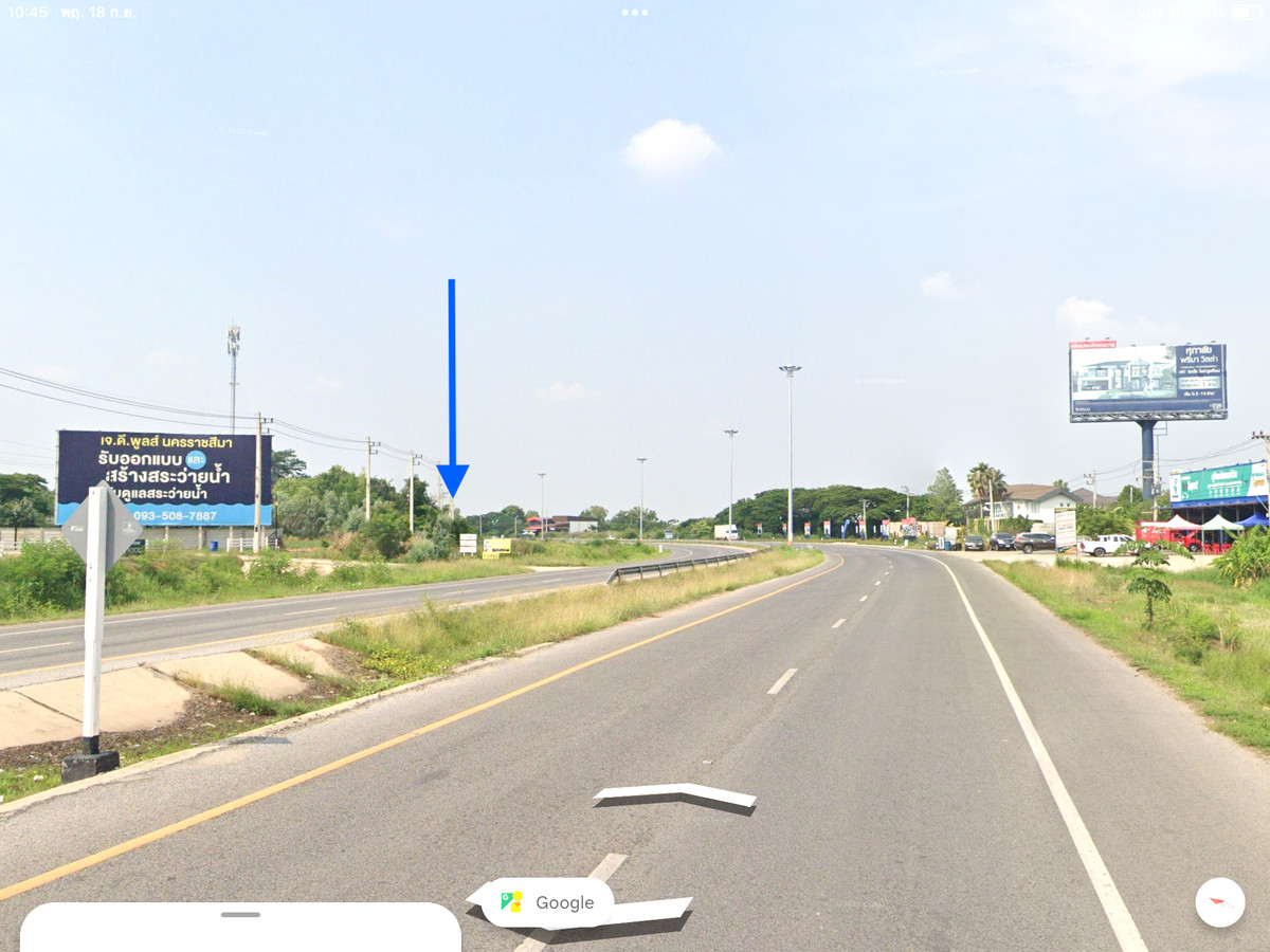 Land for sale next to the bypass road, bypassing the city, area 6-3-12 rai, opposite Supalai Village, near Makro, near Do Home, near Suranaree Industrial Zone. The location is suitable for development into a commercial building, warehouse.