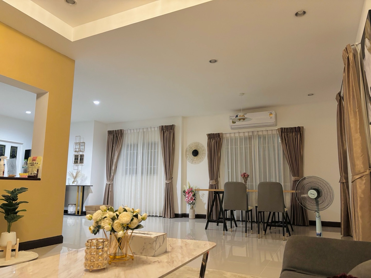 (The owner released it himself) 🌞 Agents are welcome. House for rent, ready to move in, furniture + electrical appliances Decorated garden in English style, good location near Krungthep Kreetha Road - newly cut ✨ Nalinville Village 5 (Nalinville 5) – large house ready to move in, area 60 sq m. 3 bedrooms, 3 bathrooms 💰 Rent 25,000฿/month (1 year contract, 2 months deposit, 1 month in advance) • 4 air conditioners ❄️ • 2 water heaters 🚿 • Digital TV 1 unit 📺 • Refrigerator 🍨 • Washing machine 👚 • Microwave 🍗 Highlights: • The house is ready to move in, good condition, well taken care of. • Quiet location, suitable for living. • Village near PTT gas station, Big C, convenience store 7-11. • Traveling is very convenient. Can travel in and out Can be reached via Ramkhamhaeng Road. Enter Soi Rat Phatthana (Mistine) or enter-exit via Romklao Road. Connects to Kheha Romklao Road. several main roads and Krungthep Kreetha Road - New Cut •Near the BTS, travel time approximately 10 minutes. -Airport Link Lat Krabang -Airport Link Ban Thap Chang -BTS Orange Line) If interested in making an appointment to view, contact immediately! ☎️ Contact number Mr. Fee or Contact number Khun Ta ID Line : Firani15