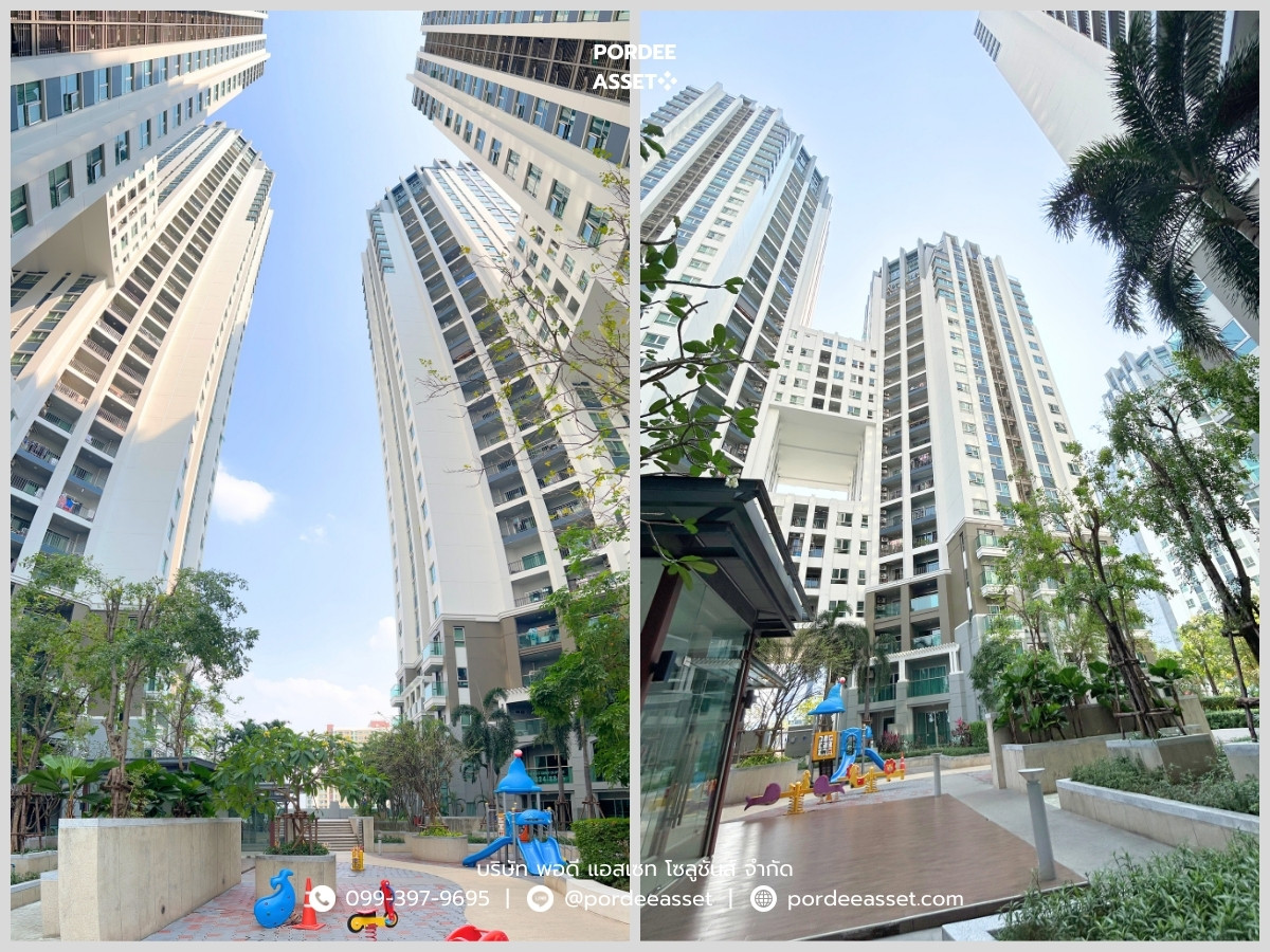 ---> Sale price : 7,290,000 บาท ---> Contact : Jeans (AG) ---> Mobile : 085•058•5475 ---> LINE : crystalmaya . Google Maps : https://maps.app.goo.gl/8fAaV3wcJsdsDBgL7 . Details : - Room type : M1 (77.25 sq.m.) : 12th floor - 2 bedrooms 1 bathroom 2 balconies - The balcony is oriented to the north - 2.4 m. ceiling height - Fully furnished, ready to move in - 3 air conditioners - 1 water heater - Build-in kitchen hood - Refrigerator, microwave, washing machine - Dining table-chairs, living room set - Bed with mattress, wardrobe - Digital Door Lock - 24-hour security, CCTV and elevator access key card - Paradise Beach Pool and fitness - Sky garden, kids playground - 130% parking lots (sharing with retail shops) - 4 elevators each building . Location : - Belle Grand Rama 9 (Rama 9 Soi.3) - Rama IX Rd, Huai Khwang, - Huai Khwang, Bangkok 10310 . Nearby locations : - MRT Phra Ram 9, Thailand Cultural Centre - Airport Rail Link Makkasan Station - Rama IX Express Way (Sirat) - Praram 9 Hospital - Piyavate Hospital - Thailand Cultural Centre - Srinakharinwirot University - SWU Demonstration and Elementary School - Maepra Fatima School - Piboonprachasan School - Central Rama 9 - The Street Ratchada - Esplanade Ratchada - Big C Ratchada