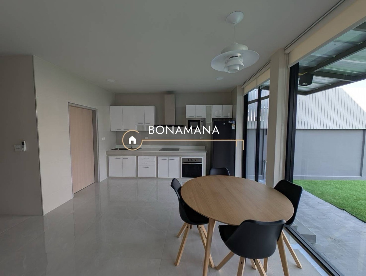 Single house for rent, Fully Furnished, near Bangkok Patana School, Soi Lasalle 43 Large single house, peaceful, private atmosphere Decorated in Scandinavian style, smooth, warm, complete functions, suitable for families who want to live long term Usable area 240 sq m. Land 100 sq m. 4 bedrooms | 4 bathrooms Fully Furnished Large backyard Kitchen with complete equipment Lots of storage room Laundry room with washing machine & dryer Separate room for storing clothes Rooms have both garden view and street view Parking for 3 cars Residential area, quiet, safe, suitable for families Rental conditions Rent 70,000 baht / month Security deposit 2 months Rent 1 month in advance Minimum rental contract 3 Year If interested, contact Khun Tang: Contact number Line ID: @bonamana Whatsapp: Contact number