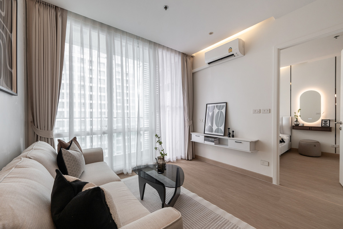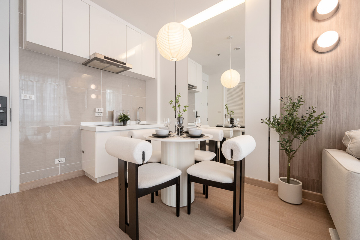 Project on Rama 9 Road, convenient travel, close to business and lifestyle areas • Close to MRT Rama 9, just 900 meters • Surrounded by Central Rama 9, Fortune Town, G Tower and Rama 9 Hospital • High