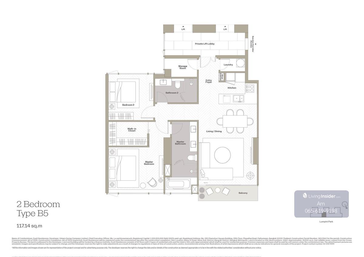 Dusit Residences: 2bed 3bath 117.4sqm. Type B5 4X Fl 46,500,000 Full Lumpini view Am: 0656199198