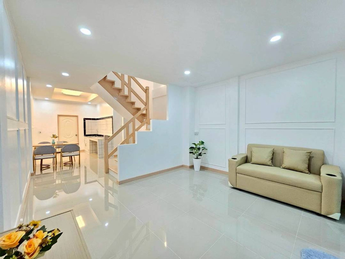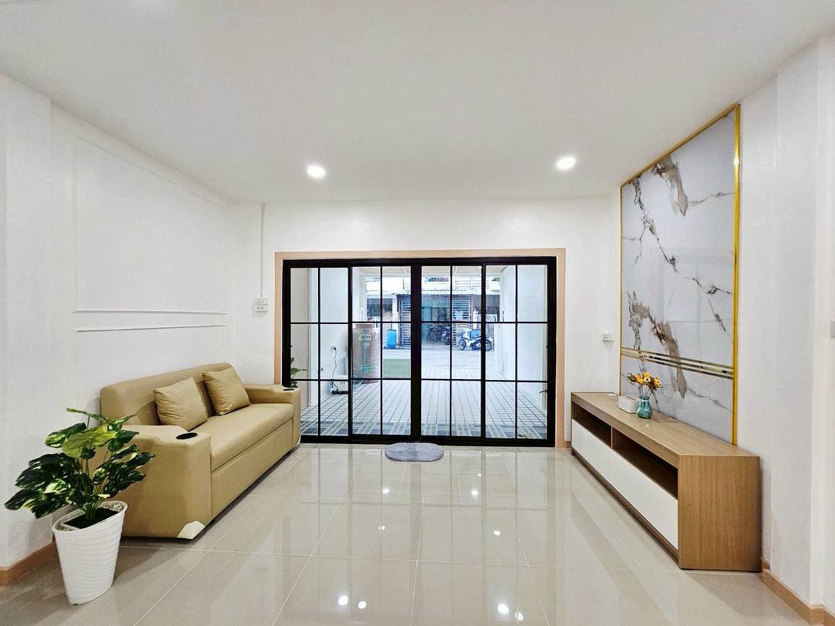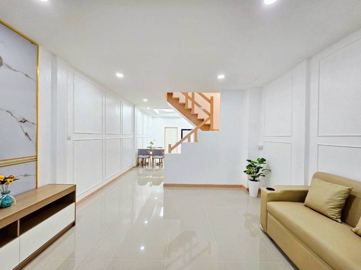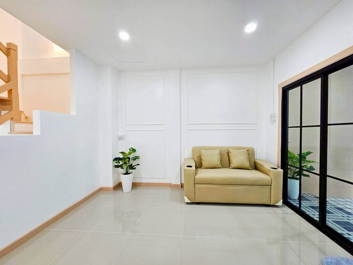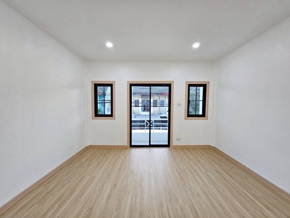 Urgent sale! 2-story townhouse, The Emerald Park Village 2, potential location near Soi Land Department, Bang Bua Thong. Connects to Chaiyaphruek and Ratchaphruek roads in only 2 minutes, area 17 sq m, function 3 bedrooms, 2 bathrooms, newly renovated, very beautiful, ready to move in. Safe with key card system and 24 hour security guard. Only 1.79 million, free transfer!