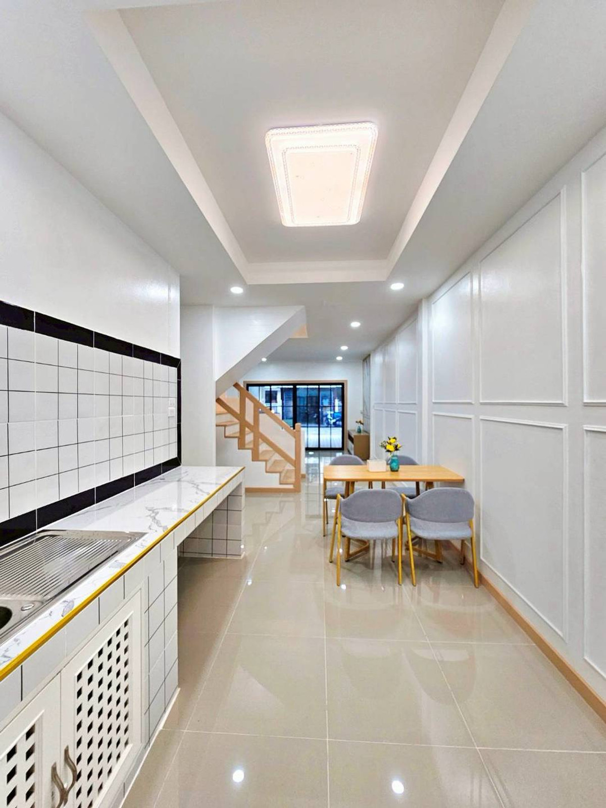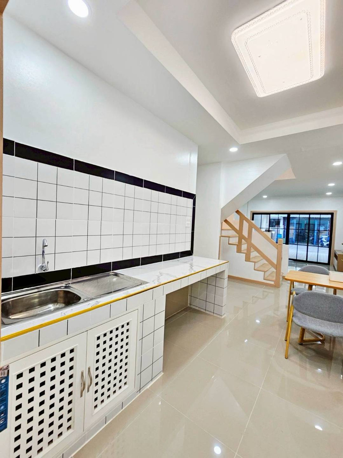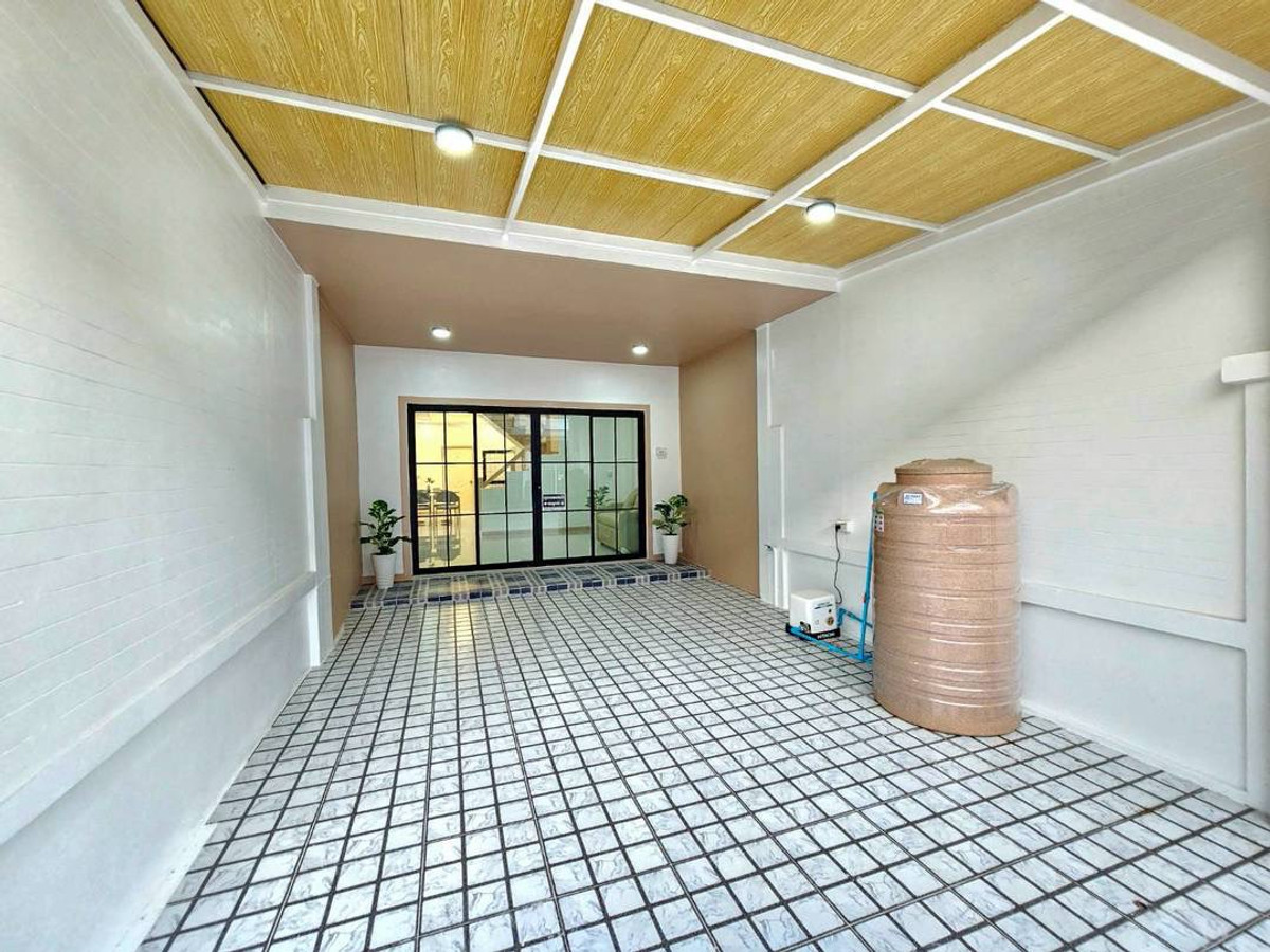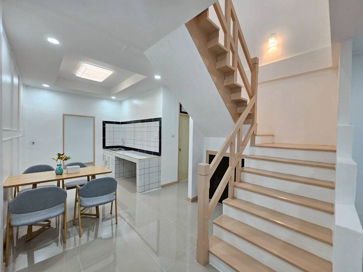 Urgent sale! 2-story townhouse, The Emerald Park Village 2, potential location near Soi Land Department, Bang Bua Thong. Connects to Chaiyaphruek and Ratchaphruek roads in only 2 minutes, area 17 sq m, function 3 bedrooms, 2 bathrooms, newly renovated, very beautiful, ready to move in. Safe with key card system and 24 hour security guard. Only 1.79 million, free transfer!