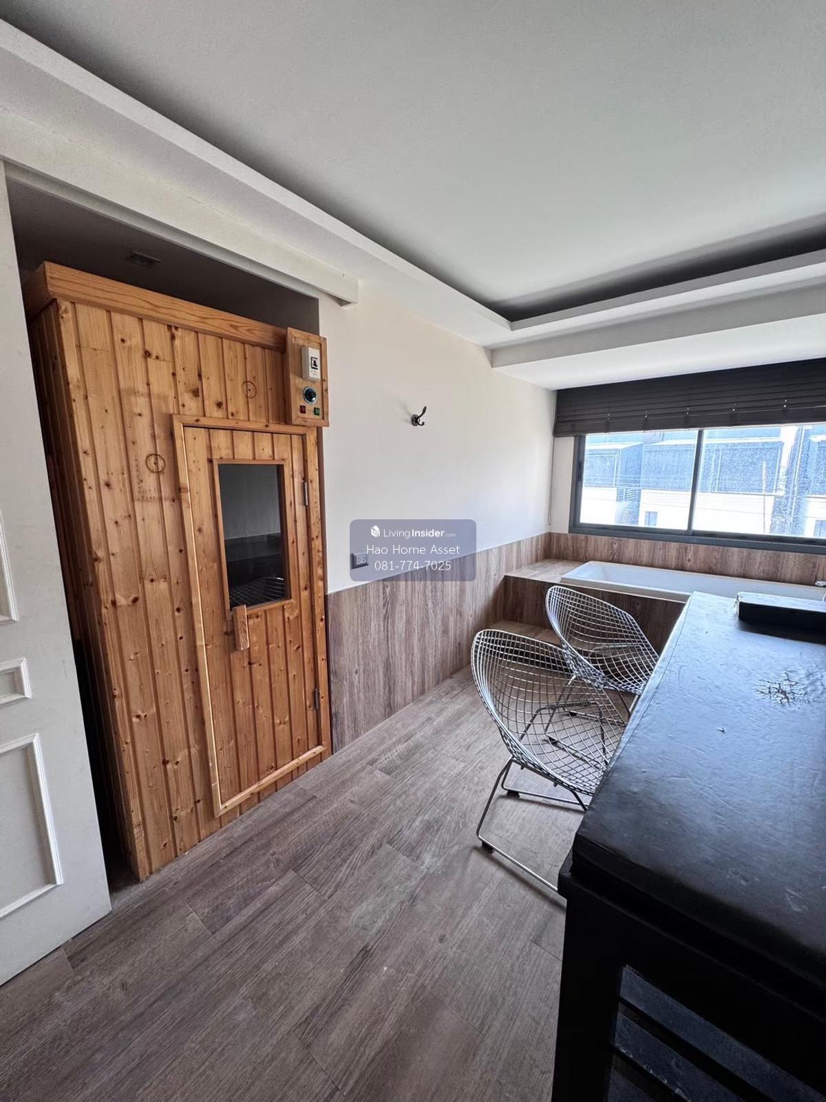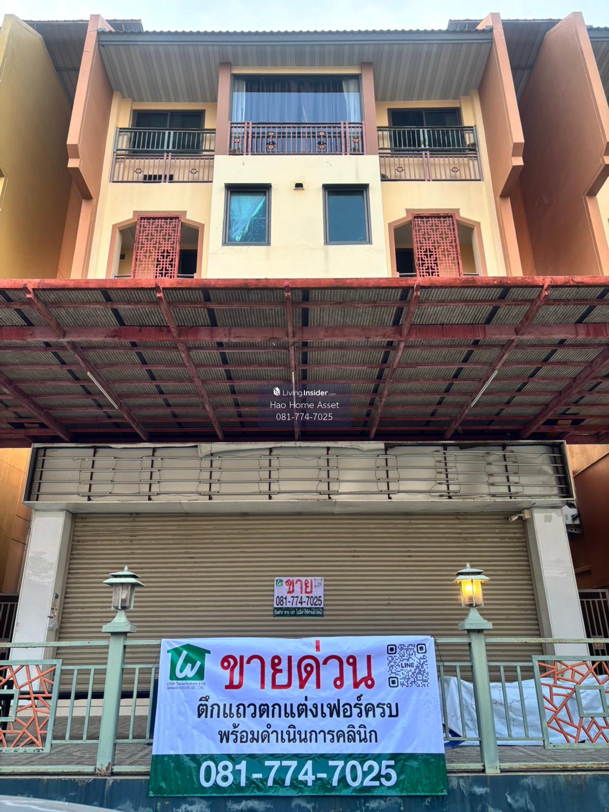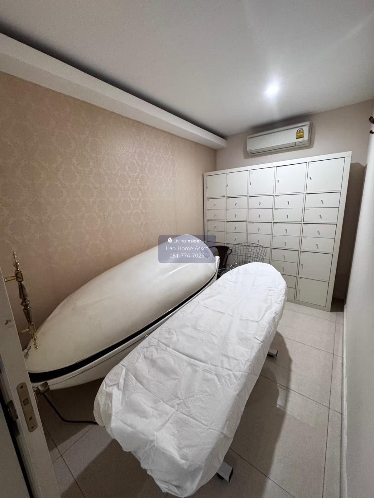 Property details: 1. Master bedroom has a walk-in closet, large bathroom with private bathtub on the entire floor 2. Small bedroom and living room, 2 bedrooms + 1 bathroom, 1 kitchen and dining room + western kitchen 3. Separate 2 maids rooms + 1 bathroom 4. Washing room with 2 washing machines and 1 dryer 5. 7 procedure rooms with beds and drying capsule boxes, 1 Sauna room 6. Examination room, doctors room 7. Decorate the counter and customer seating zone 8. 18 air conditioners, 2 large refrigerators, Smart TV 9. 4 water heaters 10. Private parking in the building and 2 cars behind 11. Customer parking is a wide area on 2 sides of the road in front of the building 12. 1 storage room under the stairs and another large storage room under the roof on the top floor. 13. Large washing and drying area on top of the building on the rooftop Nearby places : - Mahidol University, Salaya 3.9 km. - Rajamangala University of Technology Rattanakosin, Salaya 4.1 km. - College of Dramatic Arts Bunditpatanasilpa Institute, Salaya 3.5 km. - Golden Jubilee Medical Center Faculty of Medicine Siriraj Hospital Mahidol University 8 km. - Central Salaya 4.2 km.- Salaya Market 3 km. - Major Lotus Salaya 6.1 km. - Mahamakut Rajavidyalaya University 4.3 km. Further inquiries: Line ID: @816qbyrp Tel. Contact number (Manita) WeChat ID: Haohomeasset Email : Contact email