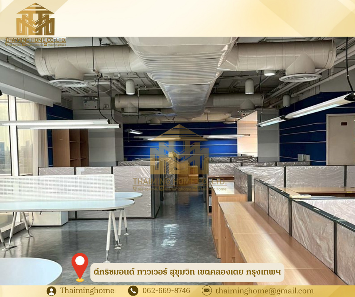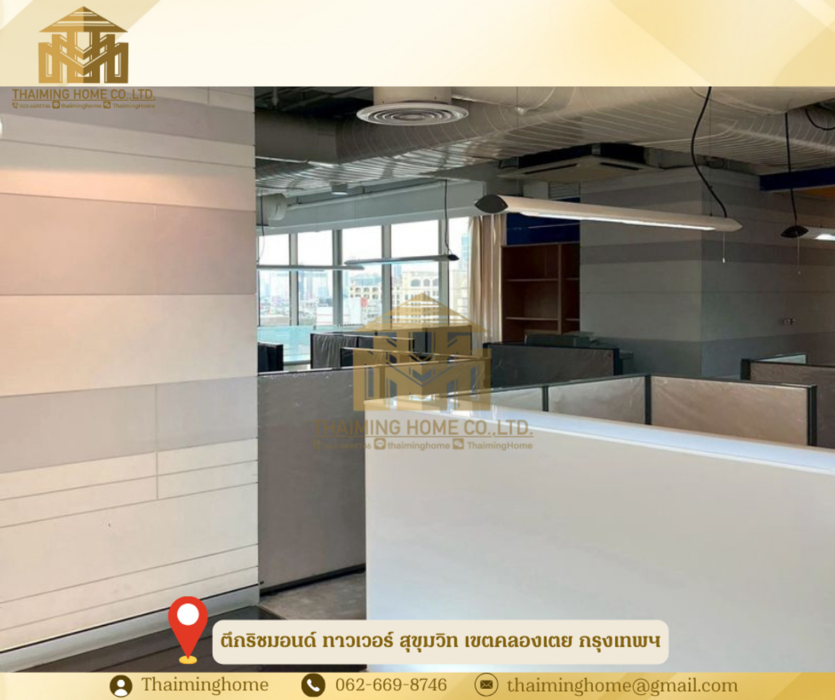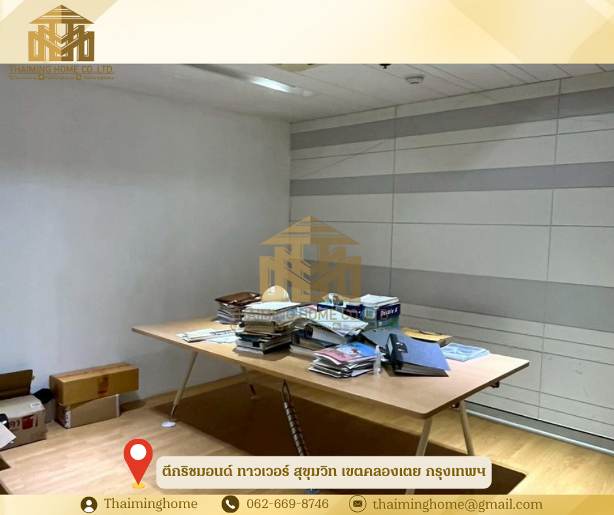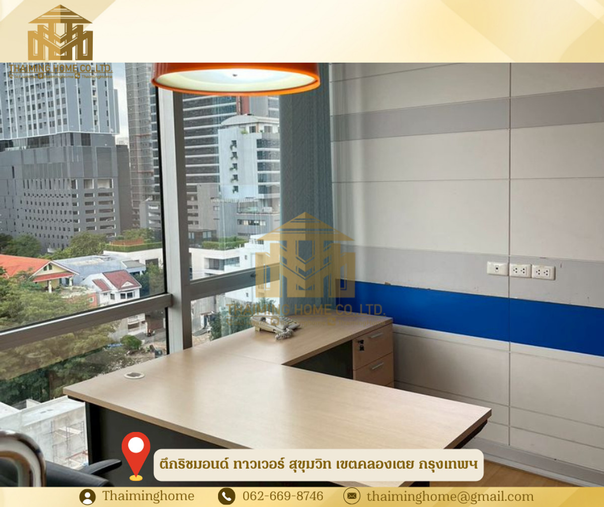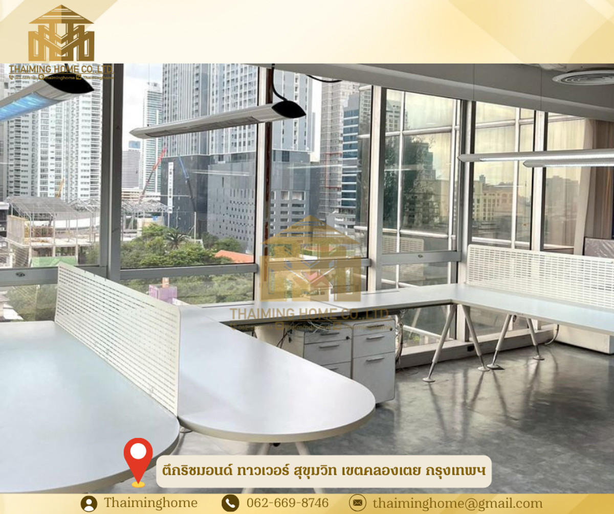Office for Rent – Richmond Tower, Sukhumvit, Khlong Toei, Bangkok (Property Code TO4-030126) Details - Prime Sukhumvit location at a special price - Corner unit, 10th floor, 209.63 sq.m. usable area - Corner unit with natural light and expansive city views - 2 private offices - 1 large meeting room - Kitchen and bathroom inside - Spacious area with a well-designed layout - Ideal for businesses seeking a premium office location in the heart of the city, with convenient transportation and surrounded by complete amenities. Nearby Locations - BTS Phrom Phong - Emporium - EmQuartier - K Village - Big C - Connects to Rama IV Road and the expressway Rental Conditions - Minimum 2-year contract - 2-month security deposit - 1-month advance payment - Monthly rent: 85,000 THB --------------------------------- บริษัท ไทยหมิง โฮม จำกัด Thaiming Home Co.,Ltd. 泰明房园 房产公司 ----------------------- Contact ติดต่อ : Contact number Contact : Contact number คุณหมิง(中文) Line ID: thaiminghome Line ID: @thaiminghome https://lin.ee/PkkHwYv Wechat : ThaimingHome E-mail : Contact email -----------------------