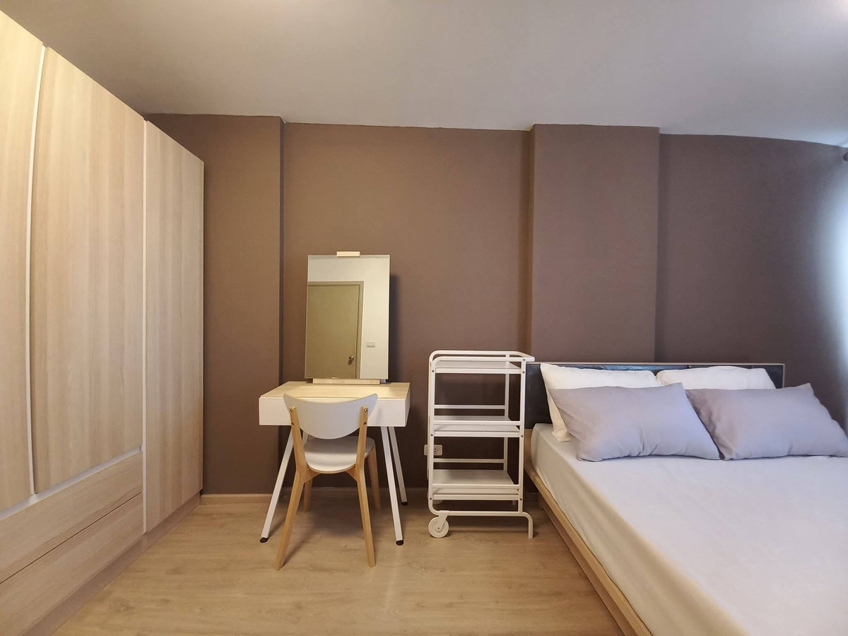 N2520 Condo for rent, 1 Bedroom, large room, 34 sq m., good view, can see the full swimming pool, plus there is a 7-Eleven downstairs, very easy to walk down to buy food at Elio Del Ray, Sukhumvit 64 (BTS Punnawithi), there is a shuttle bus to and from BTS Who has a personal car? We provide parking for 1 car, convenient entry and exit with Bluetooth Price 14,000 baht/month including common fee, 2 months deposit, 1 month in advance Inside the room, complete furniture and electrical appliances Refrigerator 2 air conditioners Washing machine Microwave Water heater Large bed Large wardrobe Storage cabinet Dressing table Sofa Dining table 2 Seat TV This condo has many common areas for use. There are 2 large swimming pools, a good atmosphere, a fitness room for exercising, an office room, and a cool air-conditioned lobby. And the security system is excellent. There is a keycard to enter the building which is in the front building. You can walk in easily. If interested, contact Contact number
