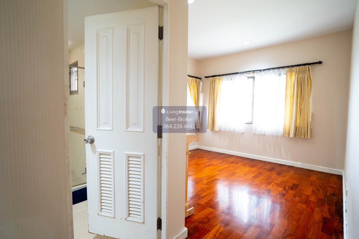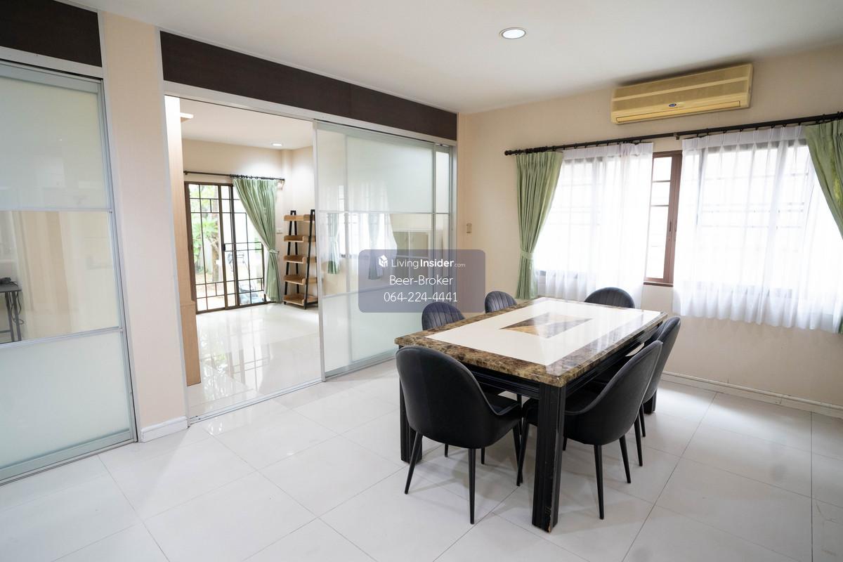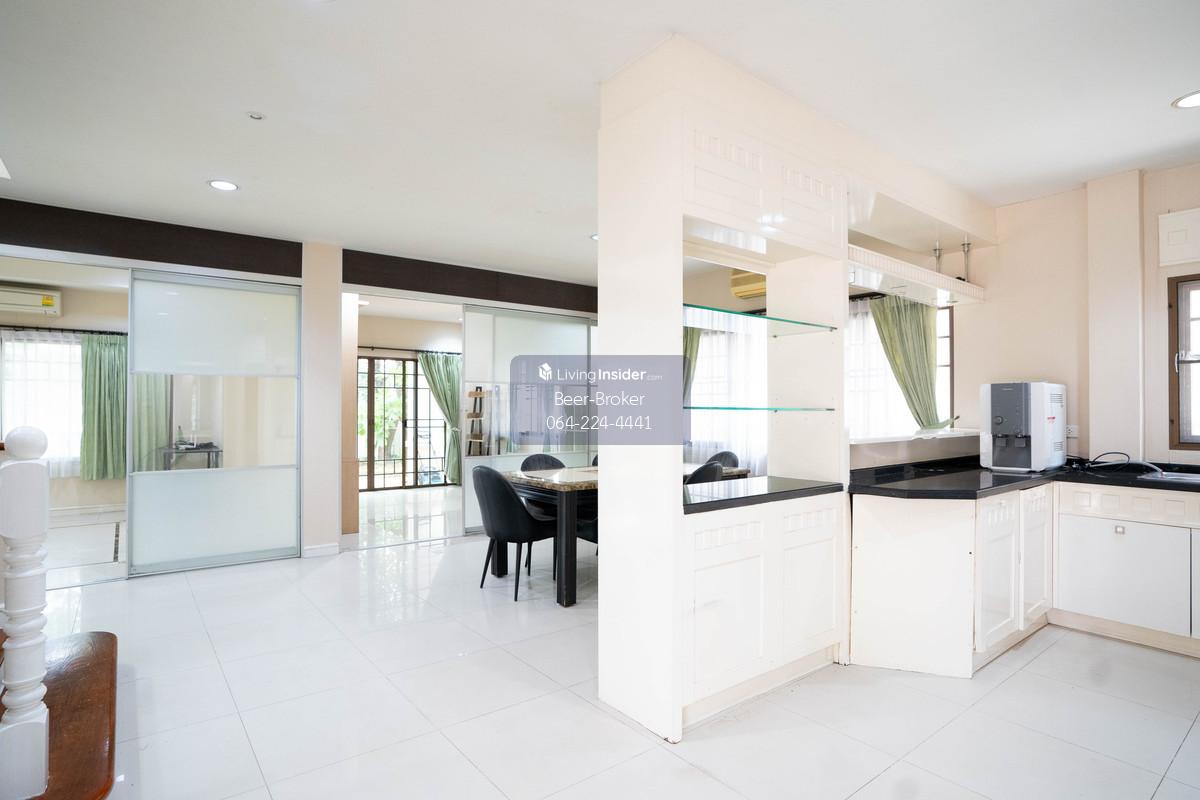 house 5 mins to the Ministry of Commerce, 120 sq.wa., 5 bedrooms, 4 bathrooms. Setthasiri Sanambinnam - Makro supermarket in front of the village - Land area: 120 sq.wa. - Usable area: 320 sq.m. - 5 bedrooms, 4 bathrooms, 2 multipurpose rooms (separate maid's room and bathroom) - 6 air conditioners + furniture (sofa, wardrobes, beds, dining table, water heater, range hood) - Parking for 2 cars - Pets allowed - South-facing house For more information, please contact us at Khun Beer : Call Contact number Line ID : @beerbroker (please include @) or Click 👉 https://lin.ee/pqQqdgP At your service.