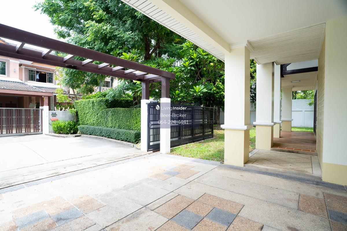 house 5 mins to the Ministry of Commerce, 120 sq.wa., 5 bedrooms, 4 bathrooms. Setthasiri Sanambinnam - Makro supermarket in front of the village - Land area: 120 sq.wa. - Usable area: 320 sq.m. - 5 b