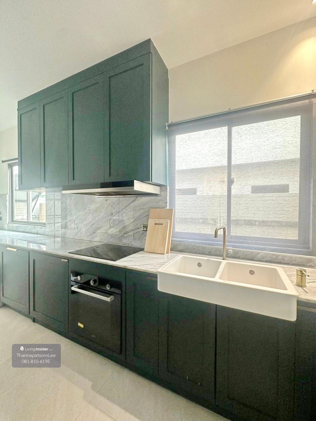 - Land area 63.7 sqw., usable area 222 sqm. Fully furnished with elegant décor, ready to move in. - 3 bedroom, 2 living room, 1 home office, 4 bathroom, 1 maid room + 1 maid bathroom, 2 parking lots - Facilities : large garden, swimming pool, fitness, 24/7 security system. - Located on Srinakarin-Romklao road, just 15 mins to Suvannabhumi airport. - Nearby shopping mall – Market Place Krungthip Kreetha, Nirvana Porch, Little Walk / school – Brighton College Bangkok, Wellington College International School, Ruamrudee International School Bangkok, Sarasa Witaed Romklao School / hospital – Samitivej Srinakarin hospital / Golf course – Unico, Krungthep Kreetha - 1 year lease. 3-month security deposit + 1-month advance rental. Price includes common area fees and garden maintenance. - No pets allowed, no smoking