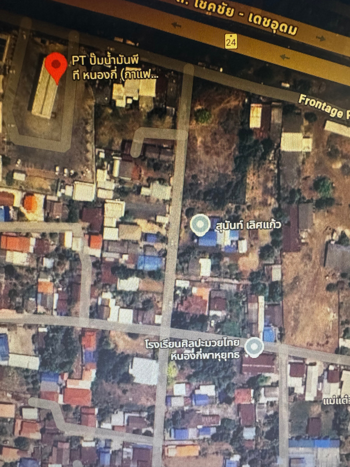 Land for sale, already filled, 199 sq m, next to the road on 2 sides, Nong Ki District, 200 meters from the PT gas station and Chokchai Det Udom Road , selling the whole plot for 1.5 million, negotiable.