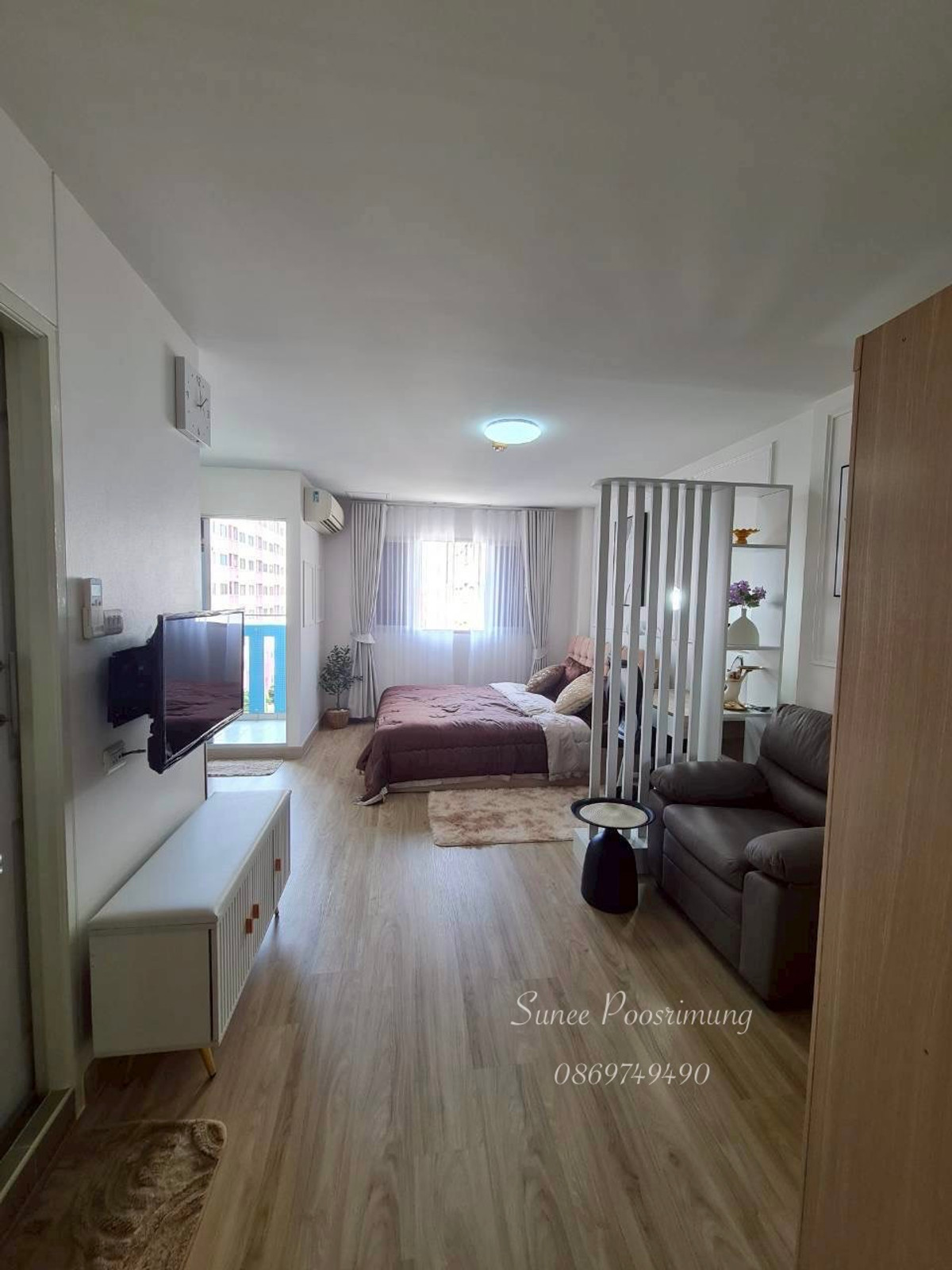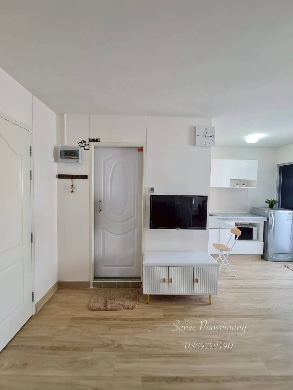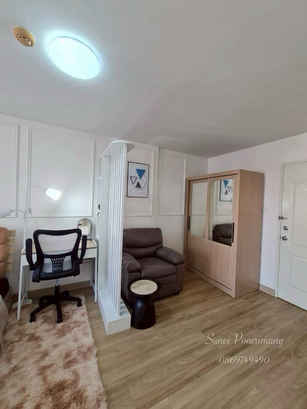 ✨ Room details: • Beautifully decorated room, minimalist style, clean white. Photos taken from real locations, 100% true to the cover. • Large bed The soft mattress is extremely soul-sucking. Separating the bedroom and living room with a luxurious wooden slatted design. There is a work corner (WFH) by the window with a ergonomic chair. 🪑IKEA+INDEX furniture +++ Air conditioner 12000 BTU +++ Bed 6 feet +++ TV smart wifi 32" +++ Refrigerator +++ Sofa +++ Work desk +++ Wardrobe +++ Water heater +++ Microwave 🚫 No pets 🚫 No smoking in the room. There is a common garden, 24 hour security, card scanning, earthquake resistant, fitness center, swimming pool, coin-operated washing machine. Near the Purple Line, there is a 7-11, a beauty salon, a dry cleaning shop, and a cafe under the building. 💰 Rental conditions: • Rent only 7500 baht/month (including common fees). Price negotiable. • 1 year rental contract (2 months insurance + 1 month advance) • Request permission to accept tenants who love cleanliness, do not smoke, and do not keep pets. 📞 Interested in making an appointment to view the room or ask for more information: Contact Pee Moo/Lek Tel: Contact number Line ID: sonya102703