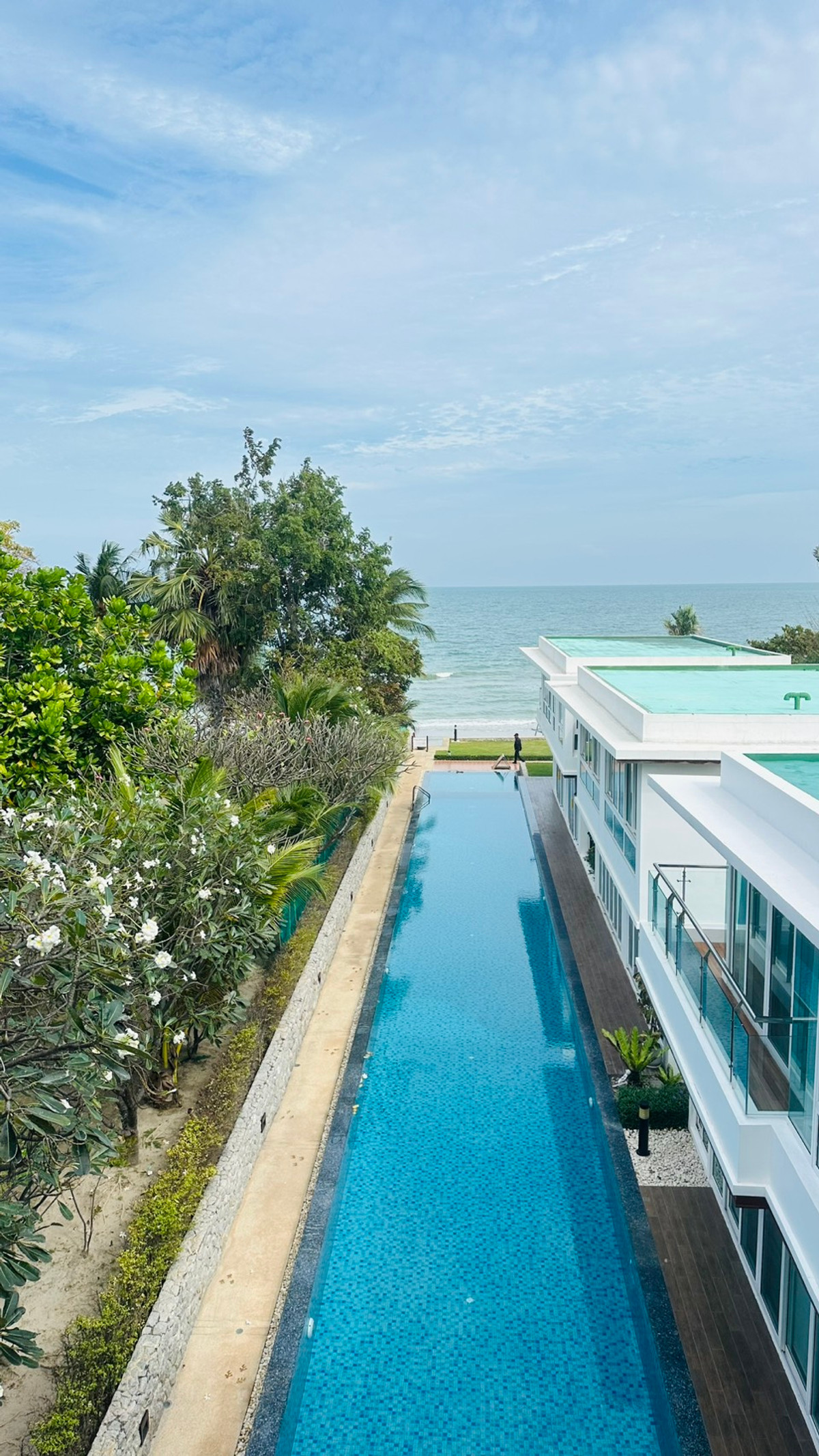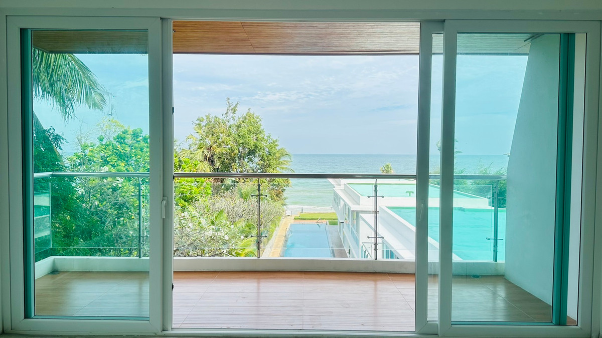 🔥 Condo for sale next to the sea, open view, nothing blocking Hua Hin 🔥 Big room, small unit, private, suitable for living or a vacation home 📍 Location: Nong Kae Subdistrict, Hua Hin District, Prachuap Khiri Khan Province Really next to the beach. Calm atmosphere Room details Usable area 120.07 sq m 3 bedrooms / 2 bathrooms 1 living room / 1 kitchen Parking under the building (1st floor) Sold according to bareshell condition (excluding decorations) Project highlights Small project, few units. Highly private Communal swimming pool Playground Security guard. 24 hours Cleaning service once a week Nearby places Bluport / Market Village International School Beaconhouse Near Chiva-Som Hua Hin Railway Station (about 7 minutes) 💰 Selling price 28,500,000 baht Buyer pays the mortgage himself Common fee 85 baht/sq m Water fee 20 baht/unit There is a house for dependents (200 Baht/person/night) 📞 Contact Oh Thanawadee Tel: Contact number Line: onnoi11