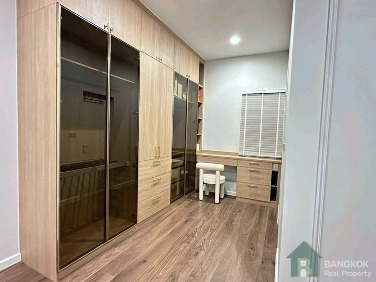 This brand new, detached, spacious family home is available to rent at Setthasiri Serithai, ideally located just off Kanchanaphisek Road and the Ring Road (Motorway 9) and just 11 minutes drive (6.4 KM) to MRT Nopparat (Pink Line) station. This detached house, set over 2 floors, brand new furniture, with 4 bedrooms, 4 bathrooms, 250 sq.m with garden and off street parking for 2 cars - Minimum 1 year contract (12 Months or more) - No Short Term Rentals - 2 Months Security Deposit + 1 Month Advance Rent - Use of Village facilities is included in the rent - Sorry, No Co Agents / ไม่รับโคเอเจนย์ For more details: LINE ID: tombkkproperty https://line.me/ti/p/UcCUcpKdaL Mobile/WhatsApp: Contact number English + Thai