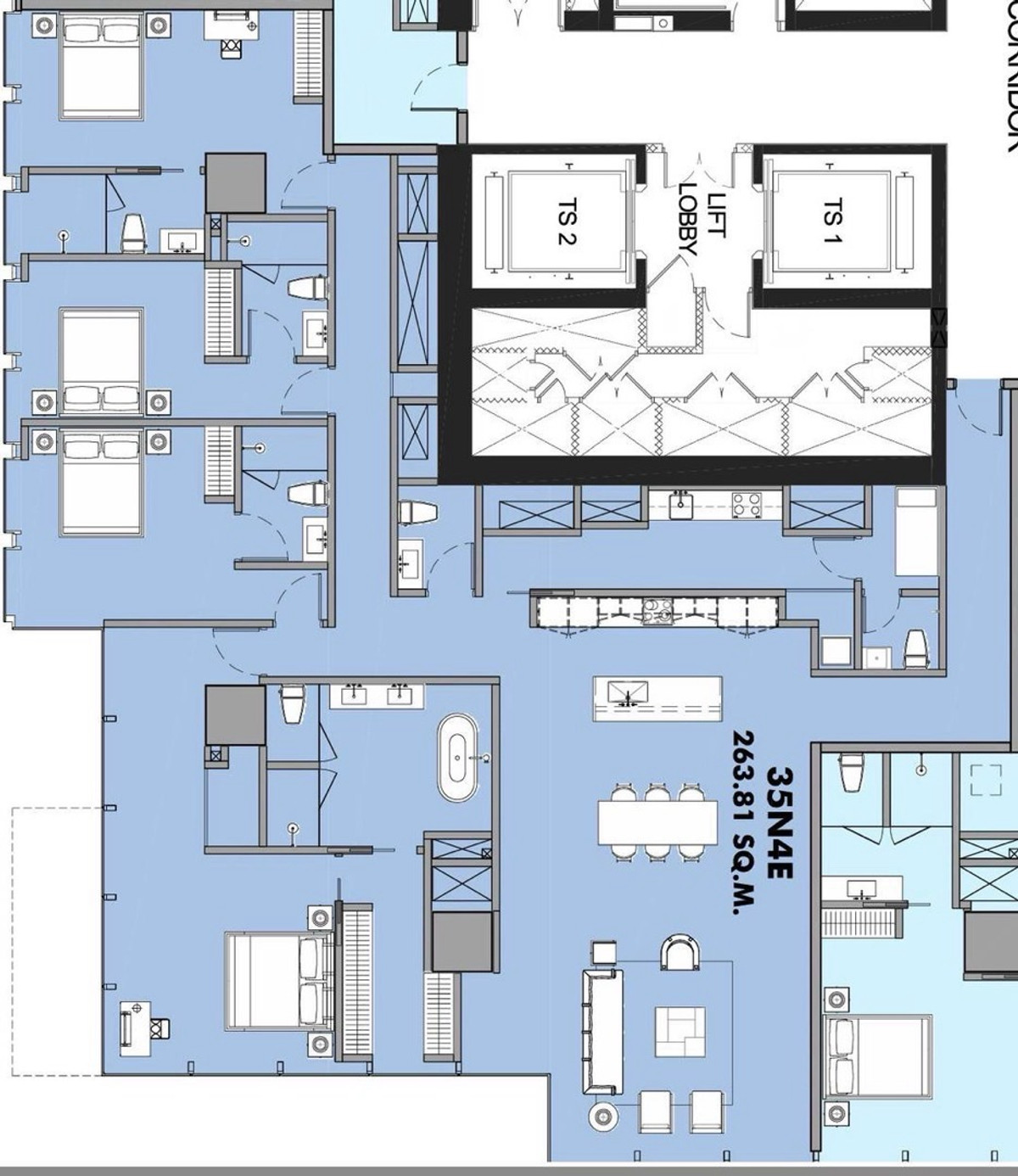 Ritz Carlton Residences Bangkok 4 bedroom 5 bathroom 2 Kitchen 1 maid room Area: 300 sqm Floor: 30+ View: Downtown Cith View Unfurnished *Pet friendly Rental price: 350,000 baht/month, yearly lease