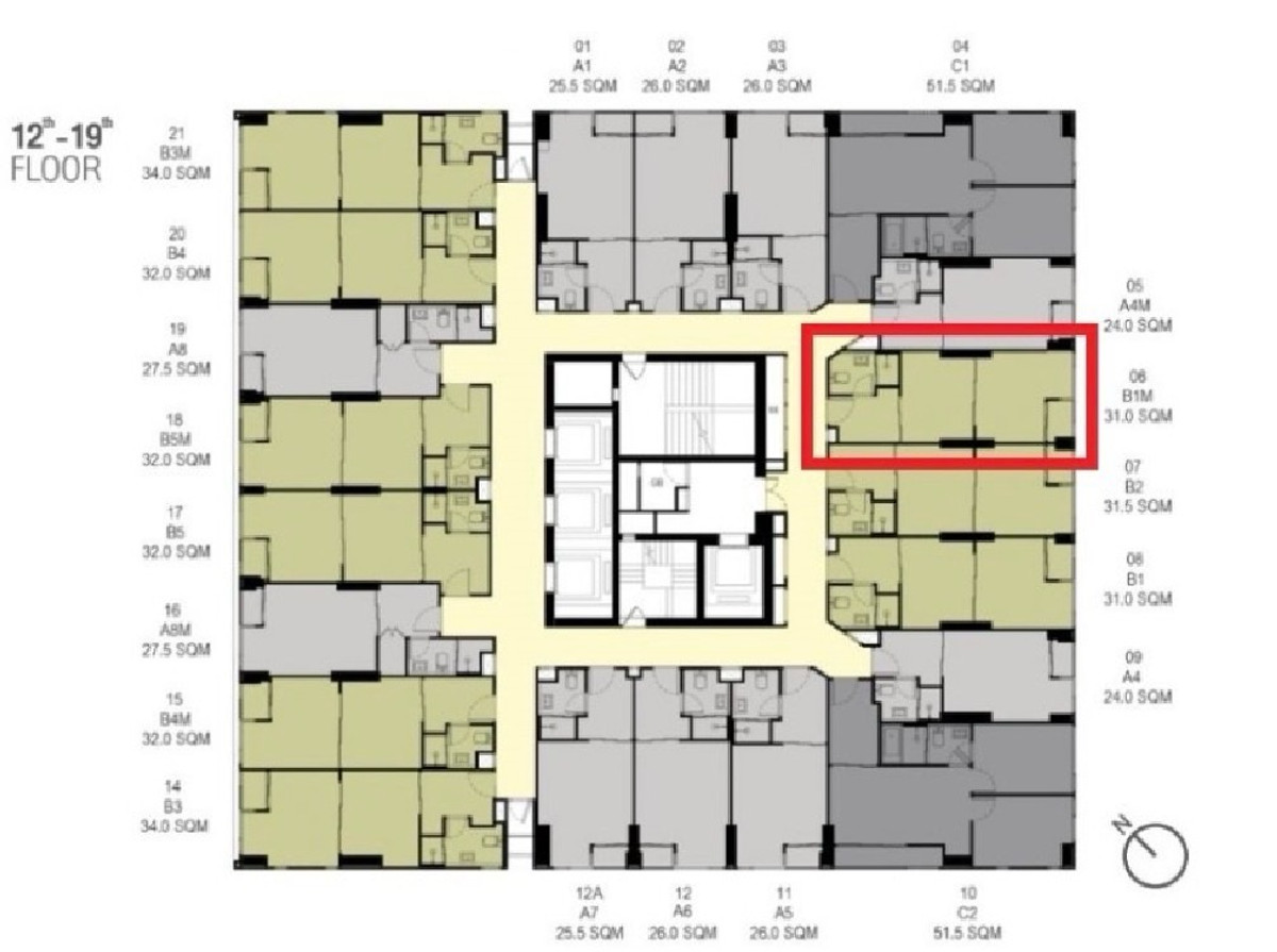 18th floor, position 06 1-bed Simplex room, size 30.81 sq m Eastern balcony, Ekkamai side, open view Inside, the room is separated between the bedroom and living room. It is the best-selling room of t