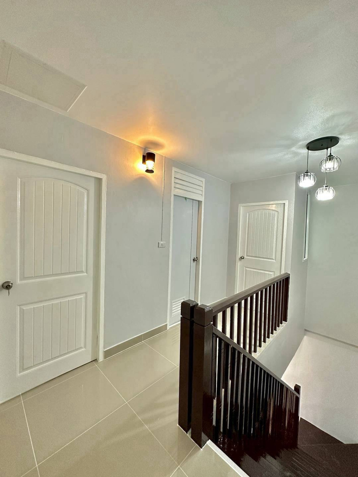 Urgent sale! 2-storey townhouse, corner house, Nanthicha Village 3/8, suitable area 24 sq m., function 3 bedrooms, 2 bathrooms, front of the house faces south. Receive cool breeze all day long. Stands out with an open area next to the house. and the addition of a balcony in front of the house that is full of space. Beautifully decorated interior with a water bar counter and large hall. Only 1.99 million, free transfer!