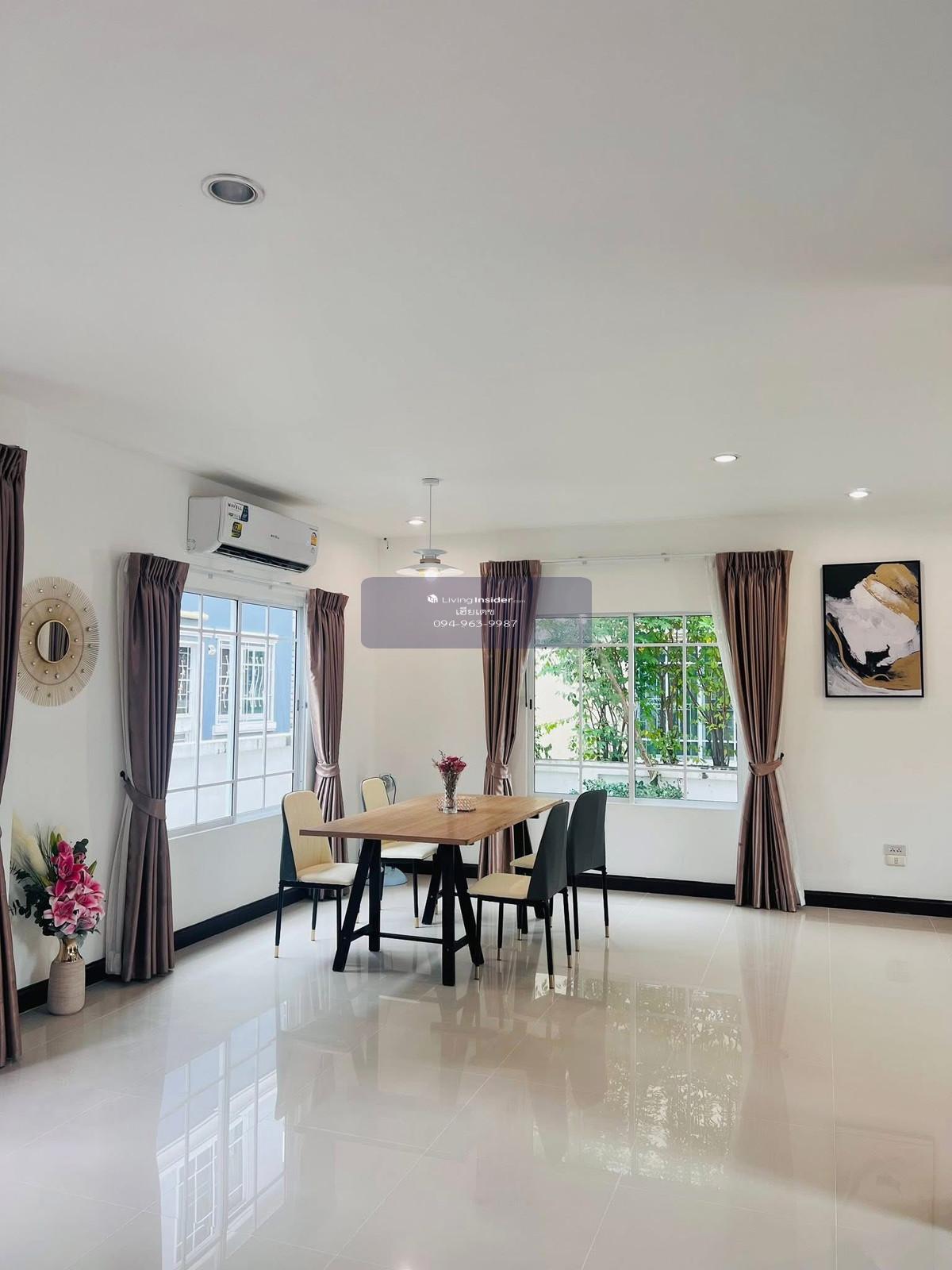House for rent at Krungthep Kreetha - newly renovated, good location , beautiful house, nice to live in, fully decorated, furniture & electrical appliances. Carry your bags and get ready to move in. 2-story detached house Decorated with an English style garden , area 60 sq m., 3 bedrooms, 3 bathrooms 💰 Rent 25,000 baht/month, 2+1 insurance, 1 year contract If interested, contact. Contact number • 4 air conditioners, 2 water heaters • 1 Digital TV, refrigerator, washing machine, microwave • House ready to move in, good condition, well taken care of • Quiet location, suitable for living • The village is near PTT gas station, Big C, convenience store 7-11 • Travel is very convenient. Can travel in and out Can be reached via Ramkhamhaeng Road. Enter Soi Rat Phatthana (Mistine) or enter-exit via Romklao Road. Connects to Kheha Romklao Road. several main roads and Krungthep Kreetha Road - New Road • Near the BTS, travel time approximately 10 minutes Airport Link Lat Krabang, Airport Link Ban Thap Chang BTS Orange Line)