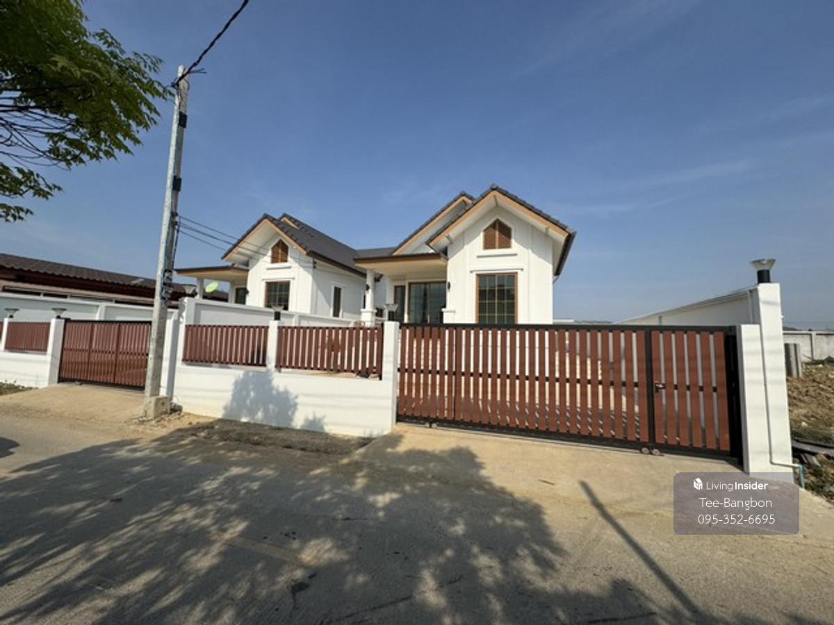 Single-storey detached house, raised high, newly built, ready to move in, Bang Yai location, Nonthaburi , self-built house outside the project, private, attention to every detail. Suitable for actual residence Location Nonthaburi Province, Bang Yai District, Bang Yai Subdistrict, Soi Saen Kanchana 1 , good location, convenient travel, close to community areas, but quiet, not crowded House details – Single-storey detached house, raised – 3 bedrooms – 2 bathrooms – Wide, airy, usable common area – Parking for 2 cars – Land size 55 square wah – Usable area 105 square meters – New house, completed, ready to move in immediately Highlights of the house – Self-built house outside the project There is no common fee. Provides high privacy – raised floor helps prevent flooding. Good ventilation – modern house design Perfect function Suitable for families of all ages – There is space around the house. Suitable for gardening, planting trees or creating a relaxation corner – Strong structure Use quality materials Intended to build for living – Bang Yai location, convenient travel into the city, close to markets, shops and amenities Suitable for – Family looking for a new home ready to move in – People who want a house outside the project, not crowded – Elderly people or families who want a single-storey house – Workers who want a peaceful home Near the city If interested, contact / Contact to give credit advice. Free taking care of all bank loan applications. Increase the chance of approval accept real estate sales in a complete manner operate quickly With a professional team more than 10 years of real estate experience and a team of more than 30 years of bank loan experts taking care of every step professionally Interested in making an appointment to see the house? or ask for more details Contact Tee Bang Bon Tel. Contact number ready to take care of you from day one Until the day of ownership transfer Honest, transparent and friendly service