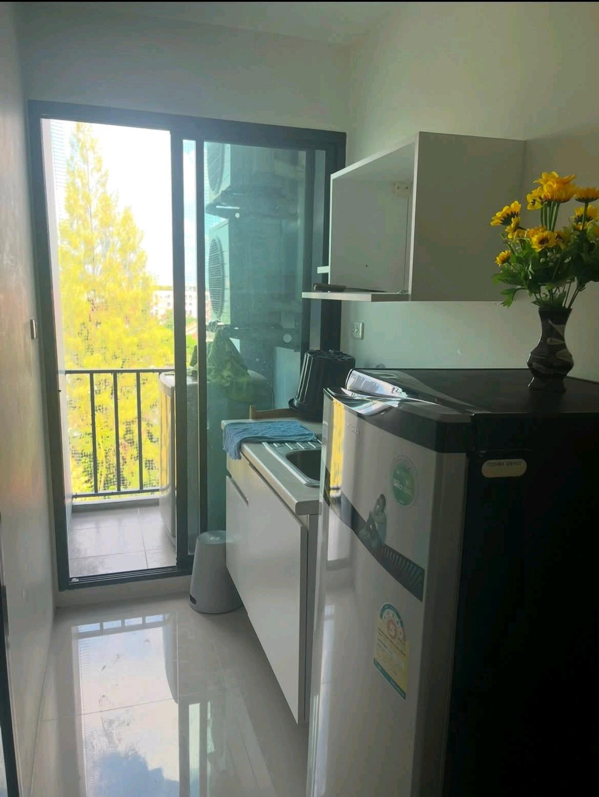 Condo for rent B-Loft Sukhumvit 109 📌📌 Room ready to move in 28 March 2026 Price 6500 baht Area: 28 square meters Bedroom: 1 Bathroom: 1 Floor: 7 Near the elevator 📌Ready to move in immediately 📌1 year contract, 2 months security deposit + 1 month advance rent Furniture 2 air conditioners, 2-seat dining table set, multi-purpose table. , shoe rack, bed with 5 foot mattress, wardrobe, refrigerator, kitchen set with dishwasher, washing machine, sliding glass shower door, warm water dispenser Free common fee 1 parking space, Fitness, swimming pool, reading room, keycard system, 2 elevators Condo for rent B-Loft Sukumvit 109 near BTS 6500 Bath/month Detail : Studio type : size 28 sqm. 7th floor Fully furnished Air condition 2 ,Refrigerator , Buit-in kitchen , Queen size bed , Closet , Dining table set, water heater ,Washing machine Facilities: Swimming Pool , Sport club , 24-hrs security , CCTV Contact : Contact number Line: https://line.me/ti/p/a9ffydvwpM