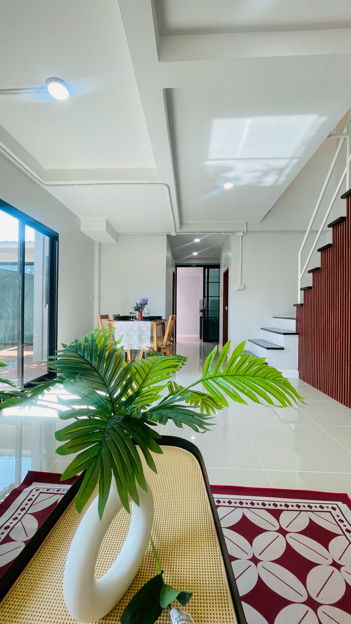 Urgent sale! 2-story townhouse at the edge of Phra Pin Village 3, Bang Yai zone, area up to 31 sq m., full functions, 4 bedrooms, 2 bathrooms, front of the house facing east. Receive morning sunshine, not hot afternoons. Features a garden area on the side that provides airiness. The whole house has been redecorated, ready to move in, free! Sofa set, dining set and rattan relaxation set Very convenient village location, has everything in one place, only 3.29 million, free transfer!